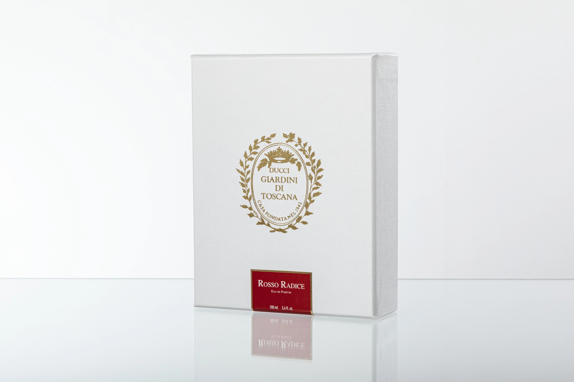 Мягкий, но в то же время насыщенный шлейф создает загадочную ауру благодаря мускусной молекуле ambrettolide, которая пленяет интерес противоположного пола. Гипнотическая композиция Rosso Radice была представлена итальянским брендом Giardini Di Toscana в 2019 году и входит в «семейную» коллекцию, которая объединяет искусство, инновации и старинные технологии.