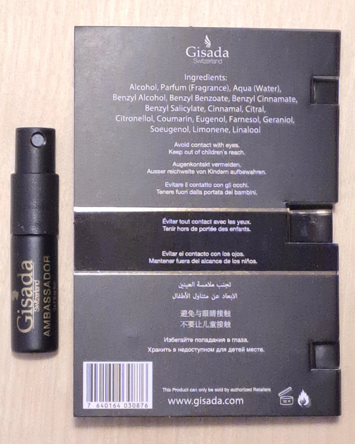 Швейцарское качество включает не только знаменитые часы и шоколад, но и элитную парфюмерию. Яростно заявляет о себе новый, но многообещающий бренд Gisada. В 2022 году Олаф Ларсен продемонстрировал обновленную версию мужского аромата Ambassador Intense, которая стала более насыщенной и выразительной, при этом сохранив espírito оригинала 2019 года. Лицом рекламной кампании стал харизматичный итальянец Микеле Морроне с глубоким и загадочным взглядом.