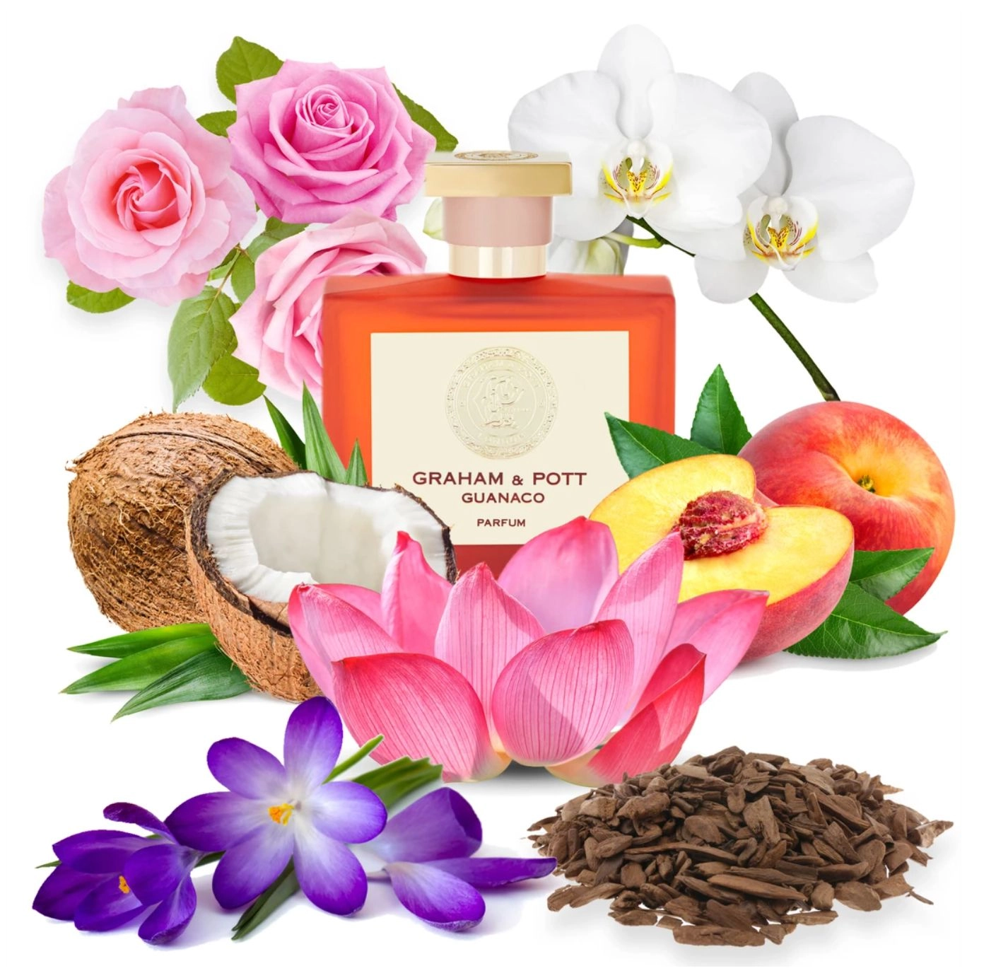 Духи Graham & Pott Guanaco представляют собой захватывающий цветочно-фруктовый аромат, вдохновленный андианскими горами Южной Америки, их удивительной красотой и разнообразием природных ландшафтов. Этот аромат выстроен вокруг тщательно подобранного сочетания цветов, древесных нот, фруктов и аккуратной пудровости, отражая неповторимый подход британской парфюмерии.