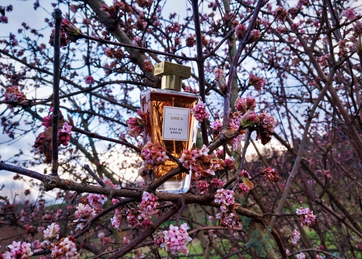 Ароматическая структура Etat de Grace от Gres построена очень гармонично, в ней нет ничего лишнего. Этот восточный парфюм, представленный в 2017 году, открывается благородным и немного высокомерным звучанием розмарина, дополненным яркими нотами цитрусового бергамота и утонченной фиалки. В сердце аромата раскрывается теплая и уютная корица, которая звучит особенно насыщенно в сочетании с аккордами страстной розы.