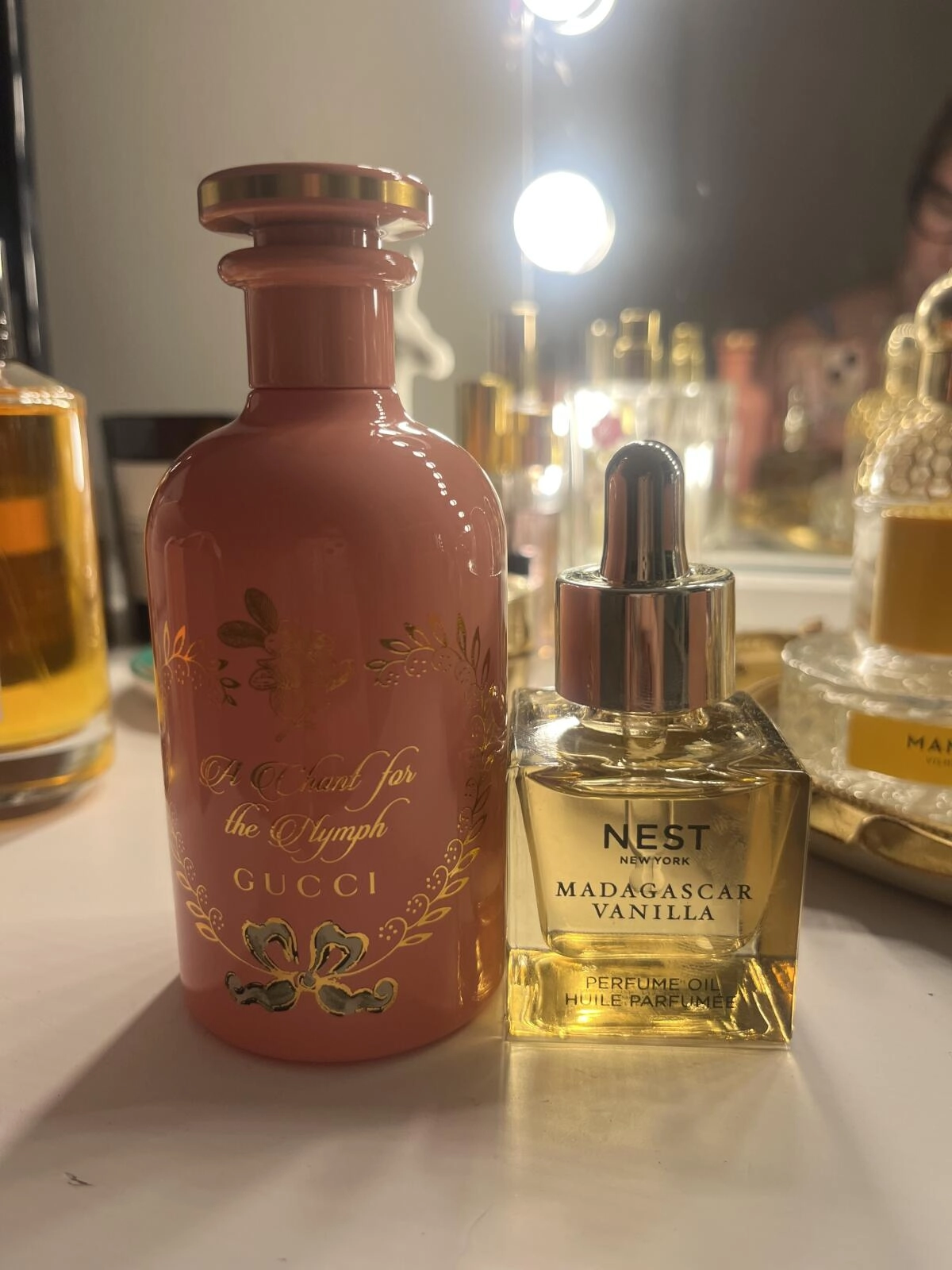 Финальный аккорд GUCCI A Chant for the Nymph остаётся с вами до самого утра, оставляя на коже нежный сладкий шлейф от карамельной ванили, как будто замыкающий волшебное прикосновение.