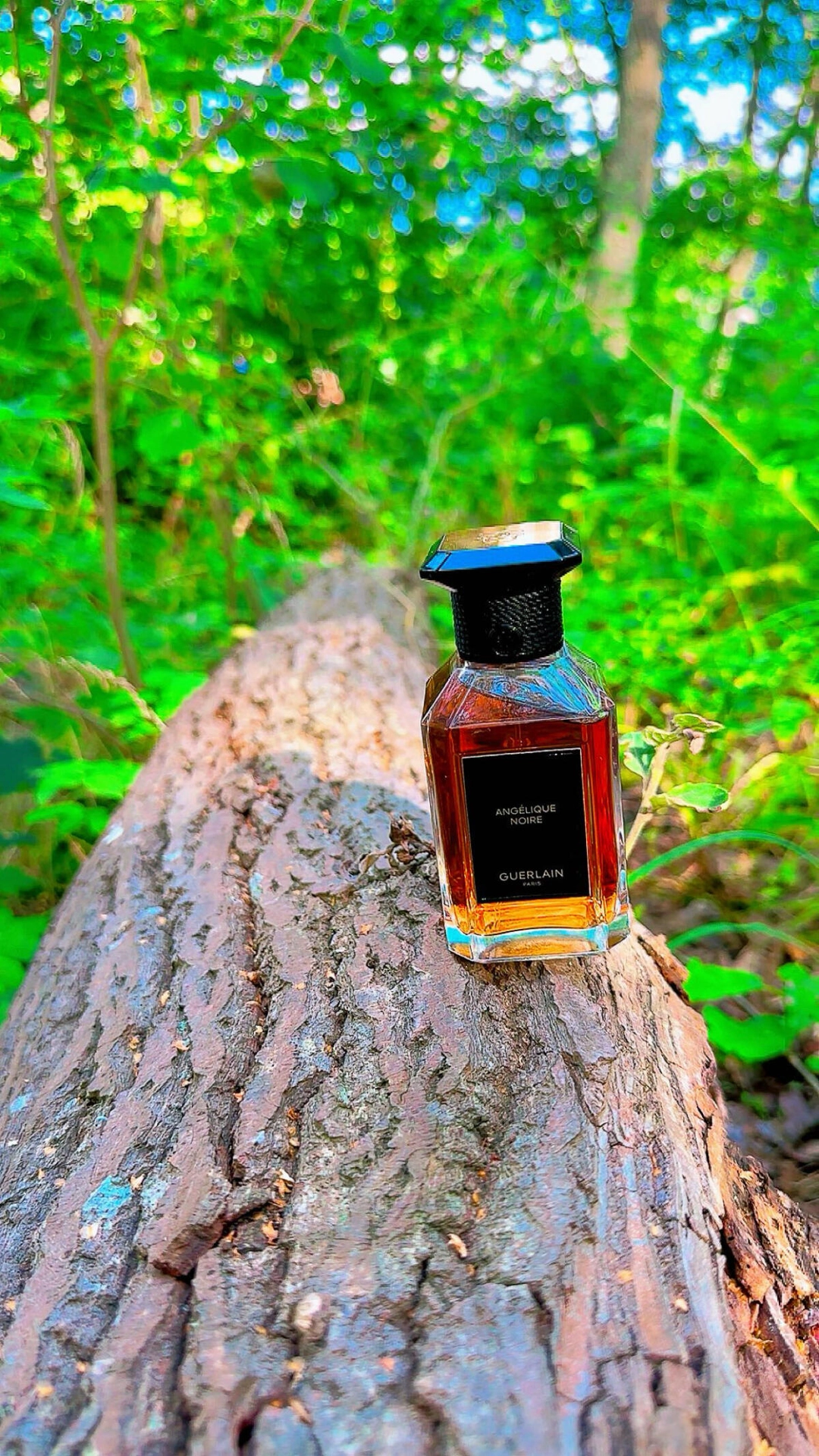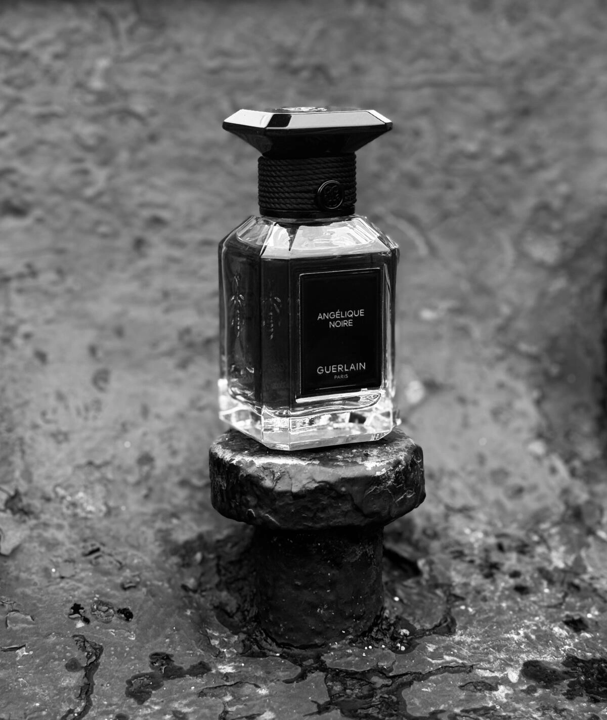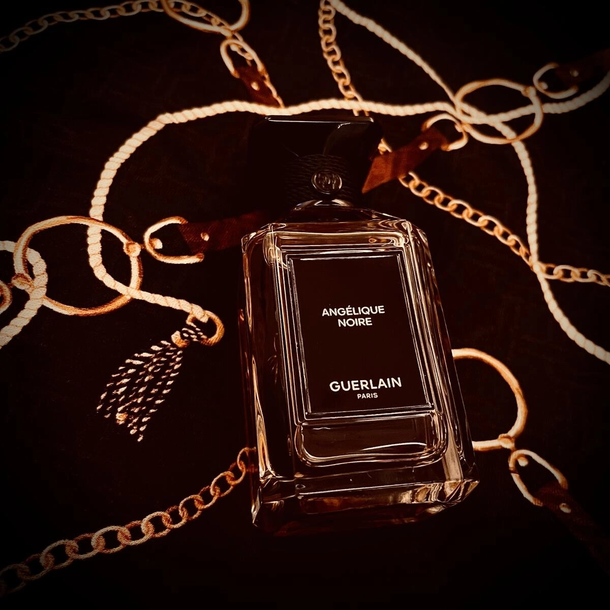 Angélique Noire является третьим ароматом этой серии и представляет собой попытку воспроизвести знаменитые композиции данного дома. Его сладкое и выразительное начало с пряностями и острыми оттенками бергамота переплетается с молочной горечью миндаля и нотами ванили. Необычное сочетание свежести бергамота и сладости ванили стало фирменным знаком классических композиций Guerlain. Пряные акценты в начале контрастируют с кремовой и сладкой базой, в которой присутствуют мягкие пряные и сахарные ноты ангелики.