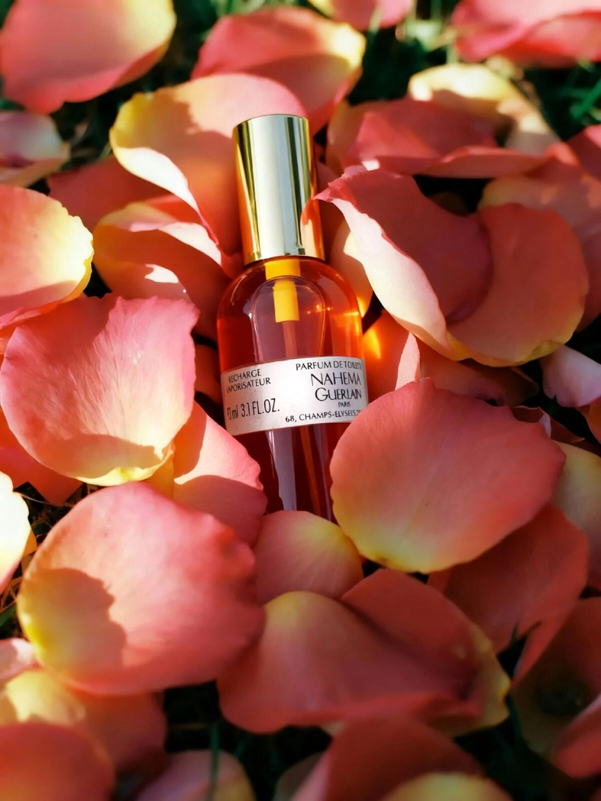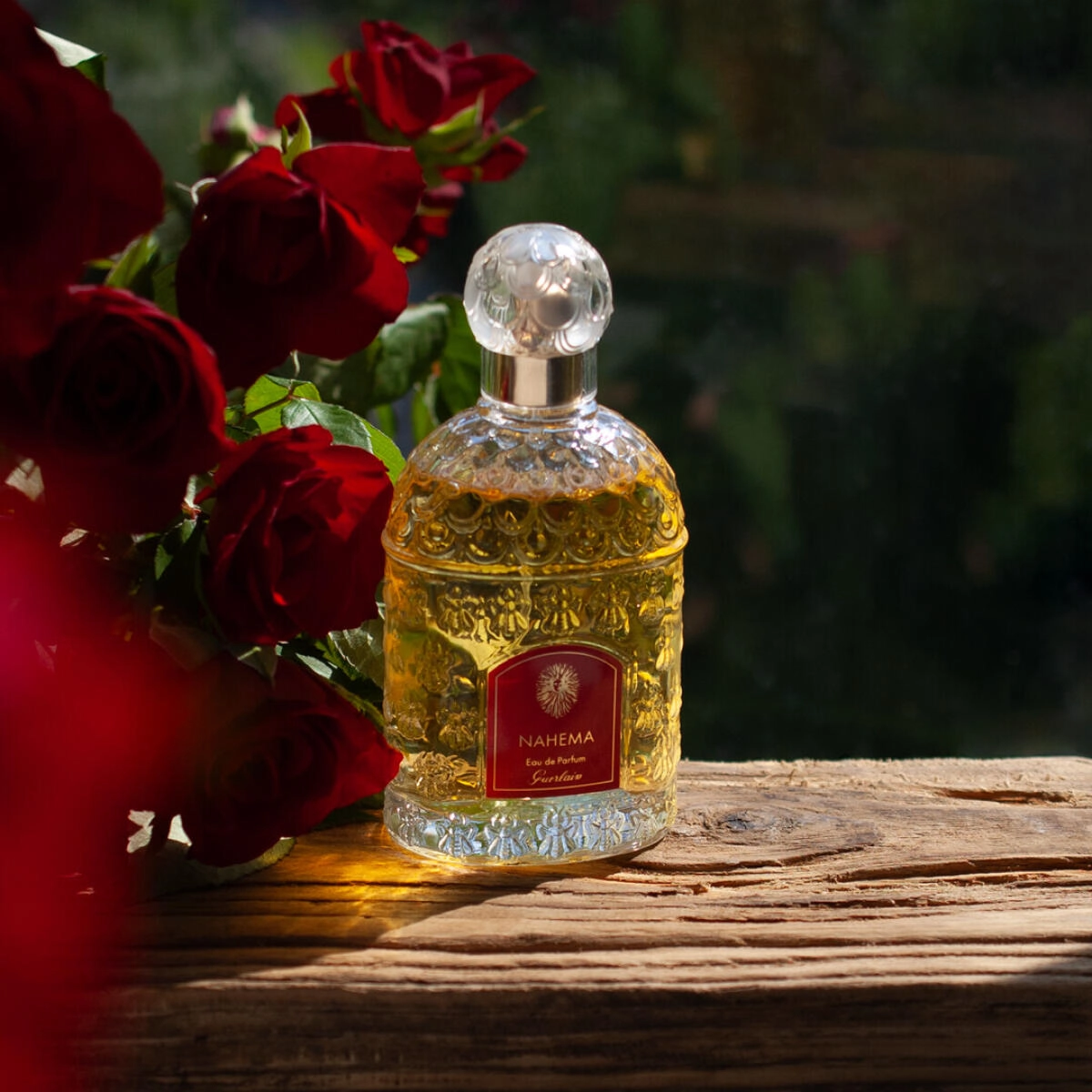 Парфюм Guerlain Nahema это классический аромат, который переносит нас в удивительный мир сказки Шахерезады о двух прекрасных сестрах, одной из которых была загадочная Махема. Начальные ноты открываются свежим запахом зелени, нежного персикового цвета, розы, ароматного бергамота и альдегидов. В сердце композиции переплетаются ноты ландыша, изысканного иланг-иланга, цветущего жасмина и аромата сирени. А завершает этот аромат базовый аккорд из маракуйи, бальзама Перу, благородного сандала, пряностей и ветивера.