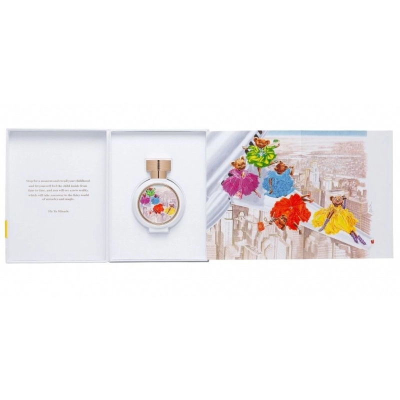 Эксклюзивный флакон разработан известным иллюстратором, который завоевал признание в мире моды. В композиции также присутствуют древесные ноты кашемира и горчинка пачулей. Чувственная формула Fly To Miracle от Haute Fragrance Company представляет собой новую, волшебную реальность, находящуюся на стыке мечты. Наслаждайтесь моментом и продолжайте верить в чудеса.