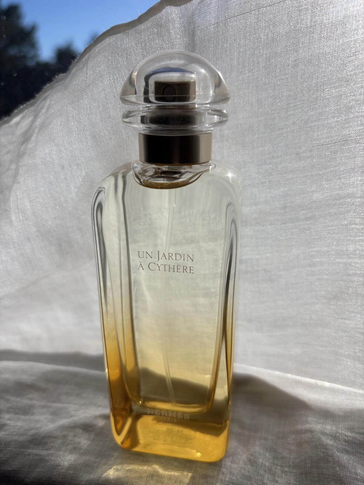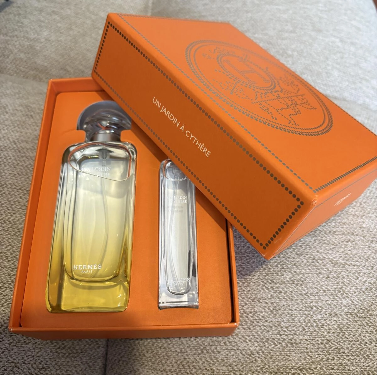 Теплый аромат Un Jardin a Cythere от Hermes был представлен в 2023 году и стал частью коллекции Parfums-Jardins, посвященной мечтам и чувственным ароматическим путешествиям. Эта парфюмерная вода, выпущенная культовым французским брендом, пробуждает вдохновение и наполняет жизненной энергией. Желтое стекло флакона символизирует солнечный свет, в то время как упаковка украшена изображениями растений, которые служат ингредиентами, на фоне синего моря.