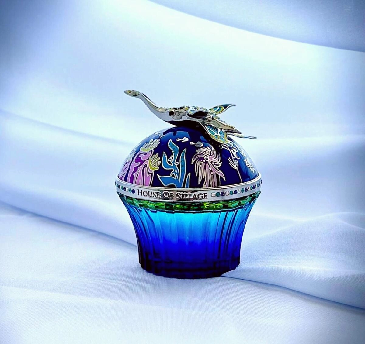 Освежающие дождевые капли косятся лесов, аромат цитрусовых деревьев и чёрной смородины мерцают в солнечных лучах. Цветущие бутоны туберозы, иланг-иланга и розы раскрываются среди плодовых садов и влажных зарослей. Амбровая смола украшает деревья, а мускус создает нежное облачко в танце запахов. Удивительный аромат заключен в прекрасный флакон, выполненный из французского стекла цвета океана с яркими переливами. Рисунки морских глубин украшают флакон, усыпанный кристаллами Сваровски. Виньеткой флакона стал морской дракон Иву, мчащийся в океанскую бескрайность.