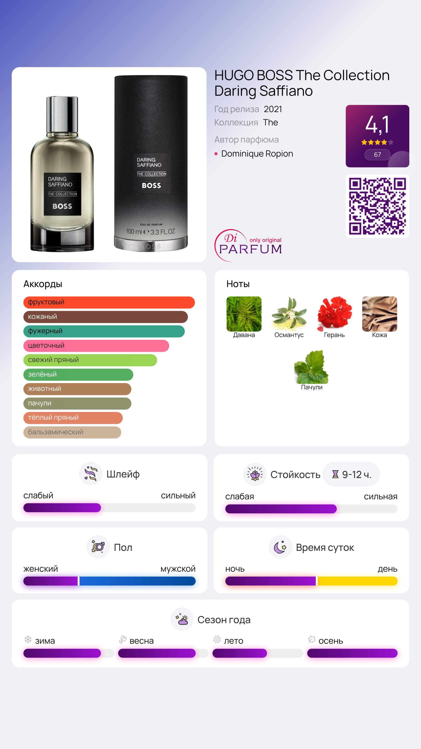 Коллекция Daring Saffiano от Hugo Boss - это уникальный кожаный аромат для мужчин, который был представлен в 2021 году. За его создание отвечал талантливый парфюмер Dominique Ropion, известный своей способностью создавать изысканные композиции.