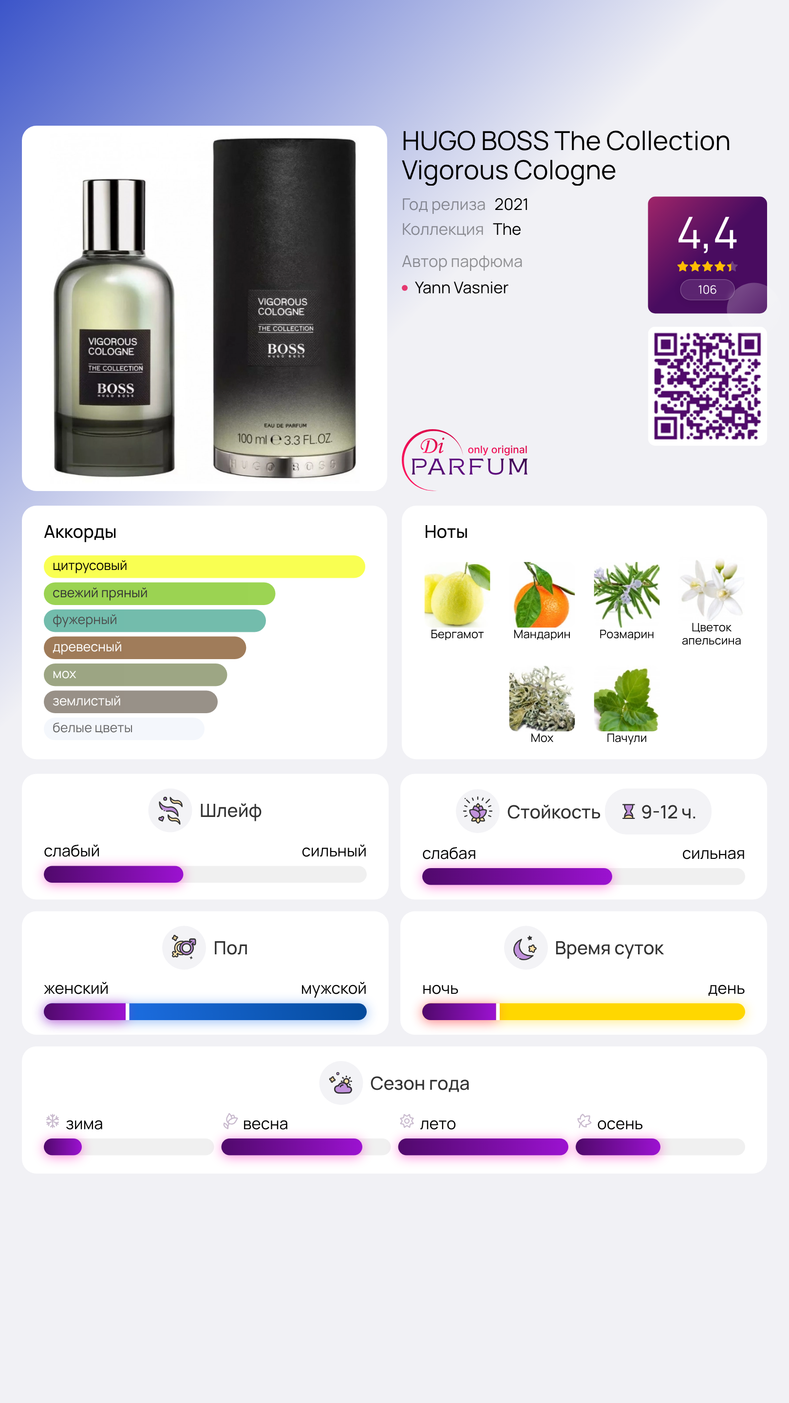 The Collection Vigorous Cologne от Hugo Boss - это древесно-ароматический мужской парфюм, который был представлен в 2021 году. За созданием этого аромата стоит известный парфюмер Yann Vasnier, который создал уникальную композицию, способную подчеркнуть индивидуальность и стиль современного мужчины.