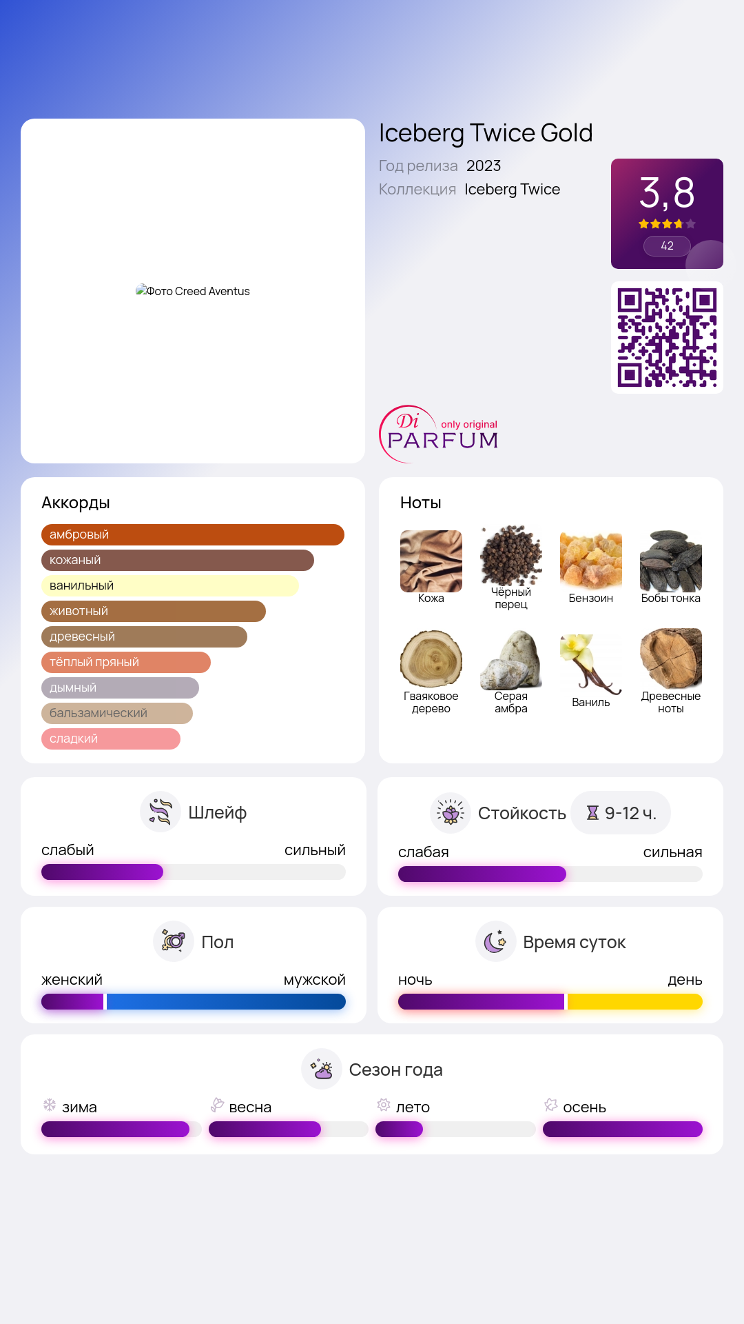 Iceberg Twice Gold от Iceberg — это уникальный кожаный аромат для мужчин, который был представлен в 2023 году. Этот парфюм идеально подходит для уверенных в себе и стильных мужчин, которые ценят высокую моду и яркие акценты в своем образе.