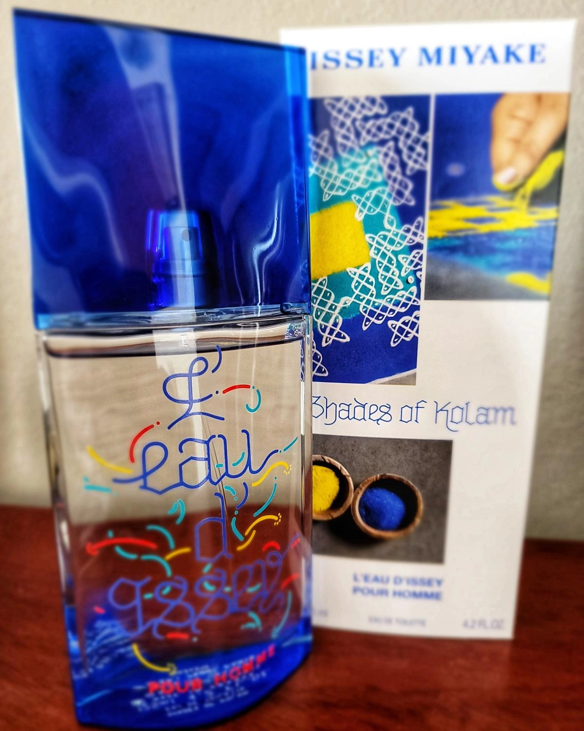 Аромат Issey Miyake L’Eau d’Issey pour Homme Shades of Kolam сочетает в себе фужерные и древесные ноты, представляя собой настоящую экзотику в мире парфюмерии. Созданный в 2010 году в результате коллаборации парфюмера и художников, он вдохновлен путешествием в Индию и богатой палитрой ароматов местных красок.
