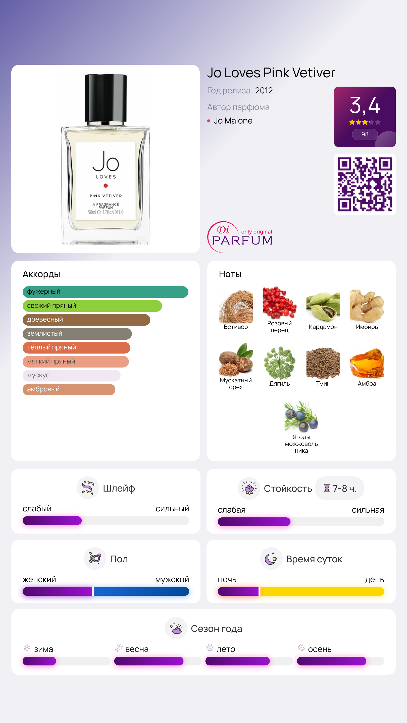 Pink Vetiver – это аромат для тех, кто ценит индивидуальность и всегда стремится подчеркнуть свой стиль. Идеально подходит для повседневной носки и особых случаев, он станет отличным дополнением к вашему аромату.