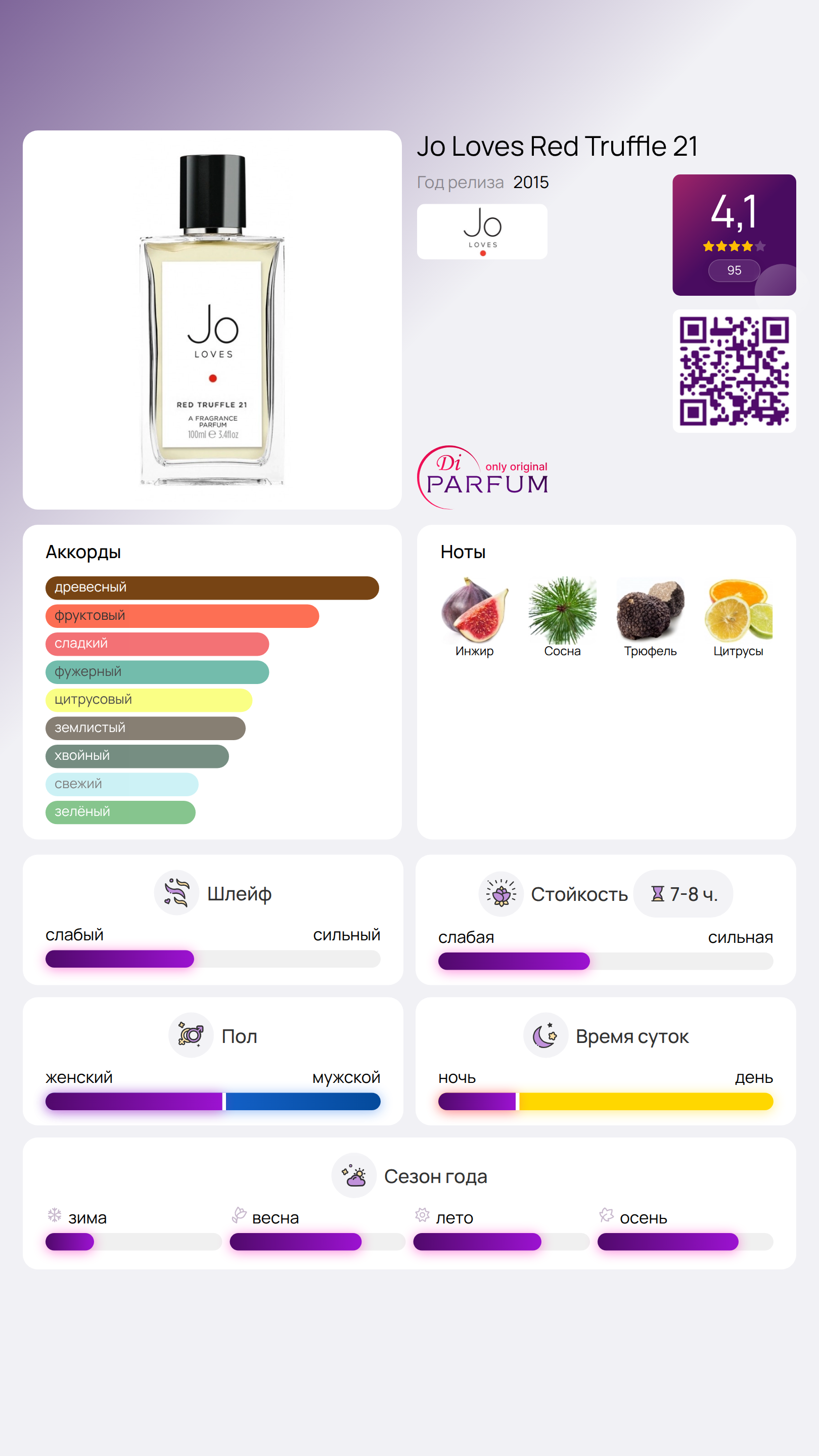 Red Truffle 21 от Jo Loves - это уникальный аромат, который подходит как для женщин, так и для мужчин. Запуск аромата состоялся в 2015 году, и его создательницей является известная парфюмер Jo Malone. Этот парфюм привлекает своей оригинальностью и многогранностью.
