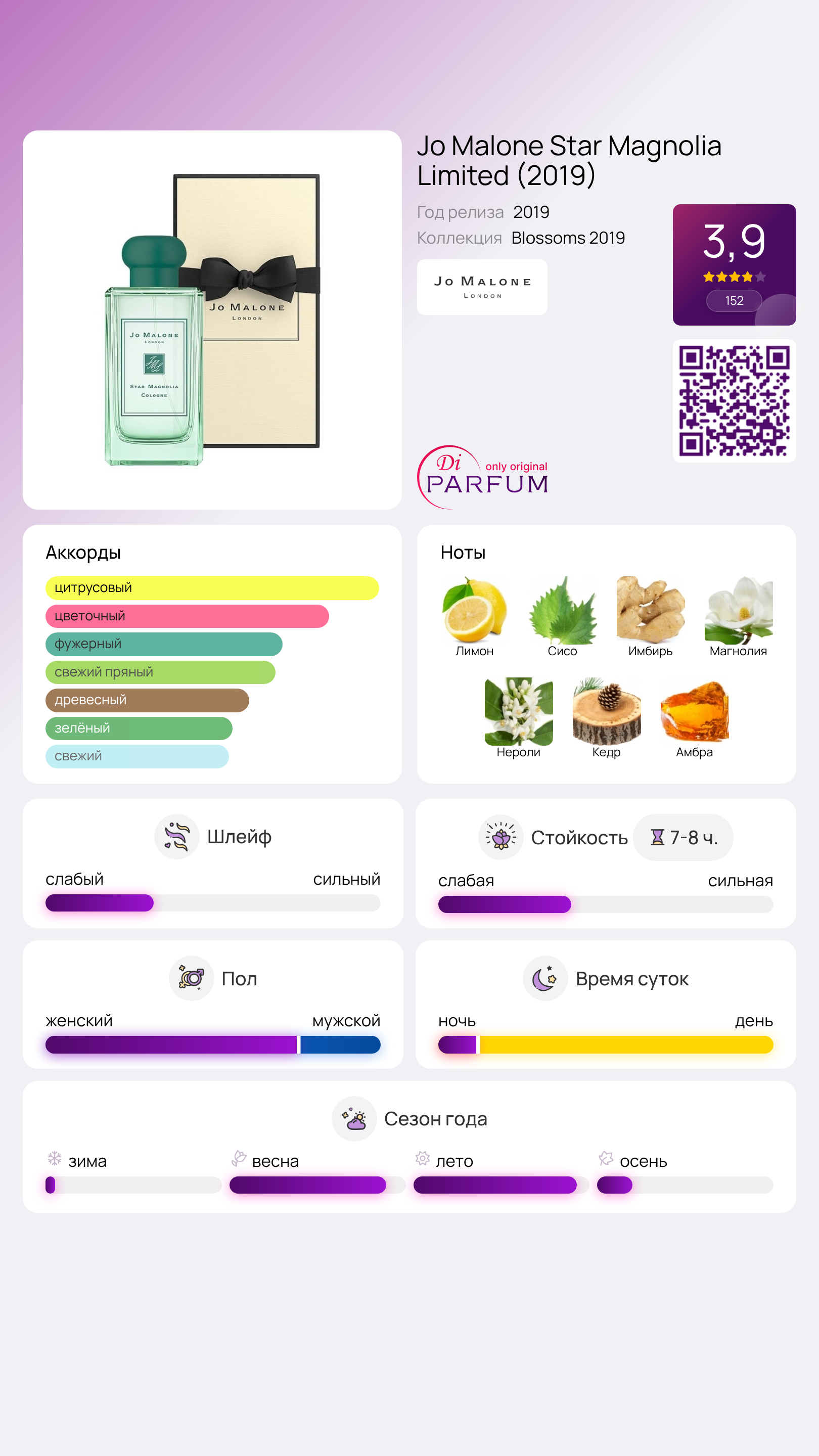 Магнолия – роскошный тропический цветок, который часто становится объектом внимания парфюмеров. Британский бренд ароматов Jo Malone выпустил несколько композиций, посвященных этому прекрасному цветку. Первое издание аромата Star Magnolia было настолько популярно, что было принято решение создать его обновленную версию - Star Magnolia Cologne Limited (2019) от Jo Malone. Этот лимитированный аромат, который стал одним из самых востребованных среди невест, остается преданным своей структуре. Формула, разработанная Anne Flipo, отличается свежестью благодаря сочетанию листьев шисо, имбиря и лимона в открытии. Основу букета составляет магнолия, подчеркнутая нотами нероли. Амбра и белый кедр не делают аромат тяжелым, наоборот, они придают ему легкость, изящество и воздушность.