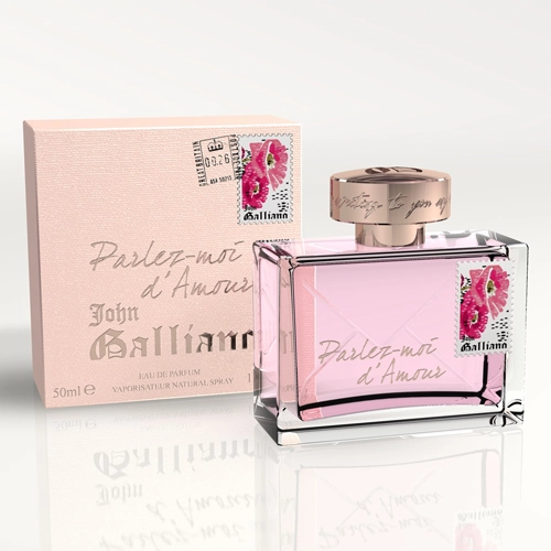 Аромат от John Galliano, вдохновленный песней Эдит Пиаф, искусно сочетает элегантность и женственность. Парфюм Parlez-Moi d’Amour наполнен нотками нежности и романтики, призван привлечь более молодую аудиторию, в отличие от предыдущего аромата Джона Гальяно, выпущенного в 2008 году. Но, как отмечает сам Джон Гальяно, когда дело касается истинной любви, возраст не имеет значения. Флакон этого парфюма выполнен в виде розового конверта с маркой - символичное послание о любви, которое он несет. Дата выпуска этого аромата - 2011 год.