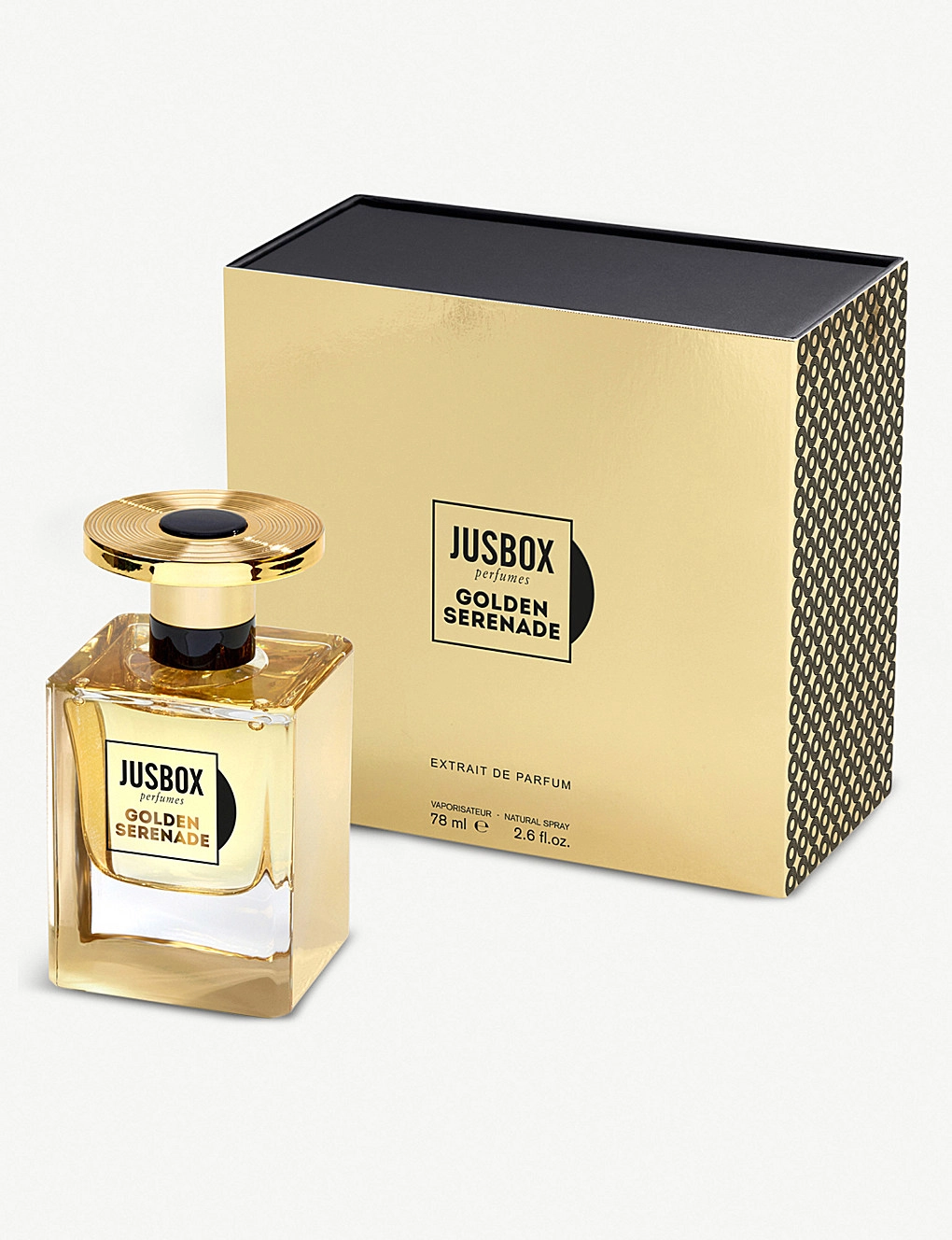 Погружаясь в Golden Serenade от Jusbox, словно переносятся в атмосферу роскоши нью-йоркских клубов 40-х годов. Парфюм наполнен ладанным дымом, сладковатым ароматом опопонакса и амбры, а также пряной ванилью. Этот аромат – это сияющий гимн любви к миру в целом, а также к искусству и музыке. Золотистый колпачок флакона,