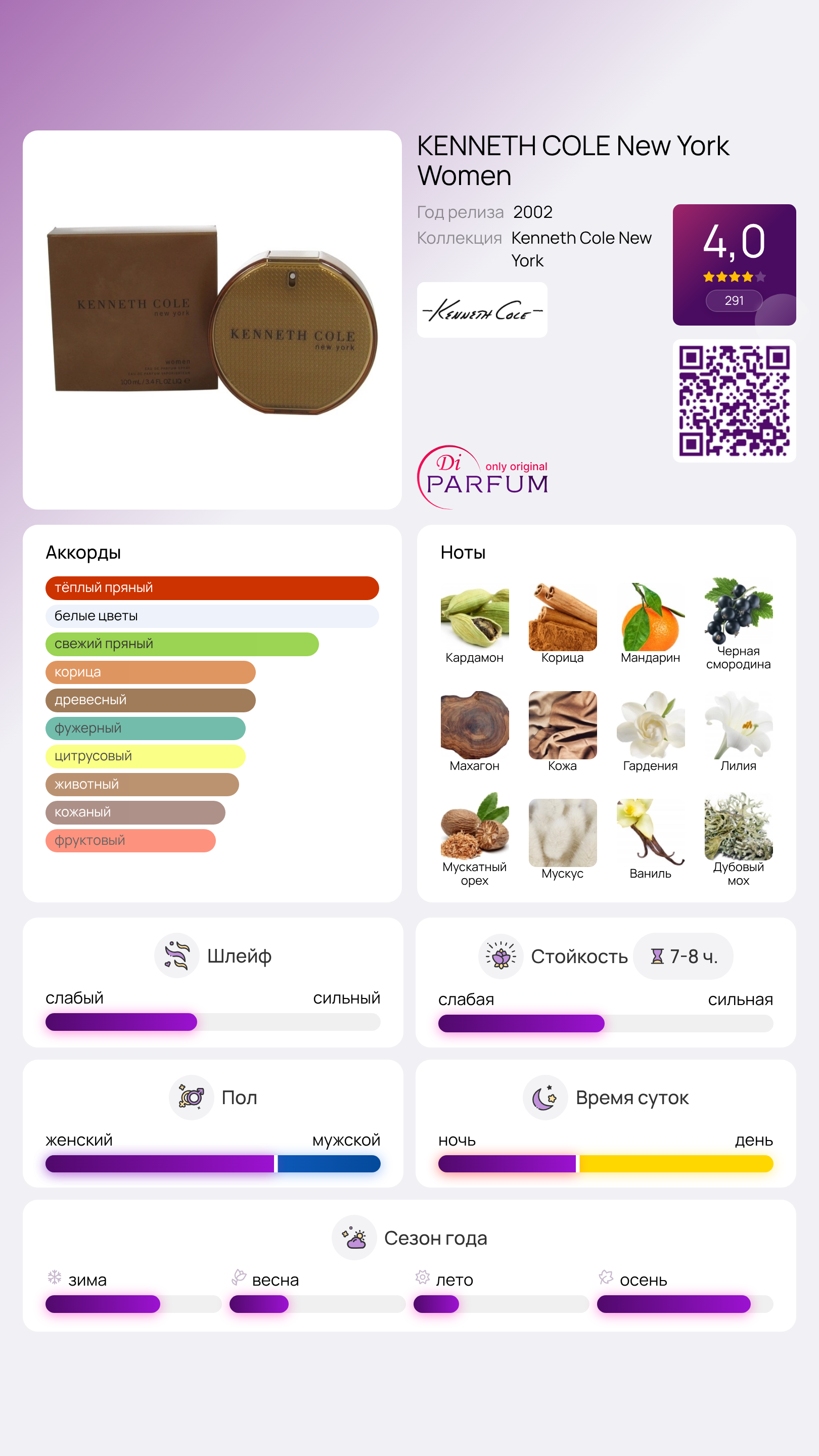 Этот стойкий и плотный аромат шлейфа пропитан уютом. Хотите выделиться из толпы и подчеркнуть свою индивидуальность? Представленная парфюмерная композиция не является шаблонной или чрезмерно популярной, однако она, несомненно, прекрасна, хотя и осталась несправедливо незамеченной. Он отлично подойдет бизнес-леди, а также для тех, кто ценит ритм жизни в мегаполисах. Данный аромат был выпущен в 2002 году.