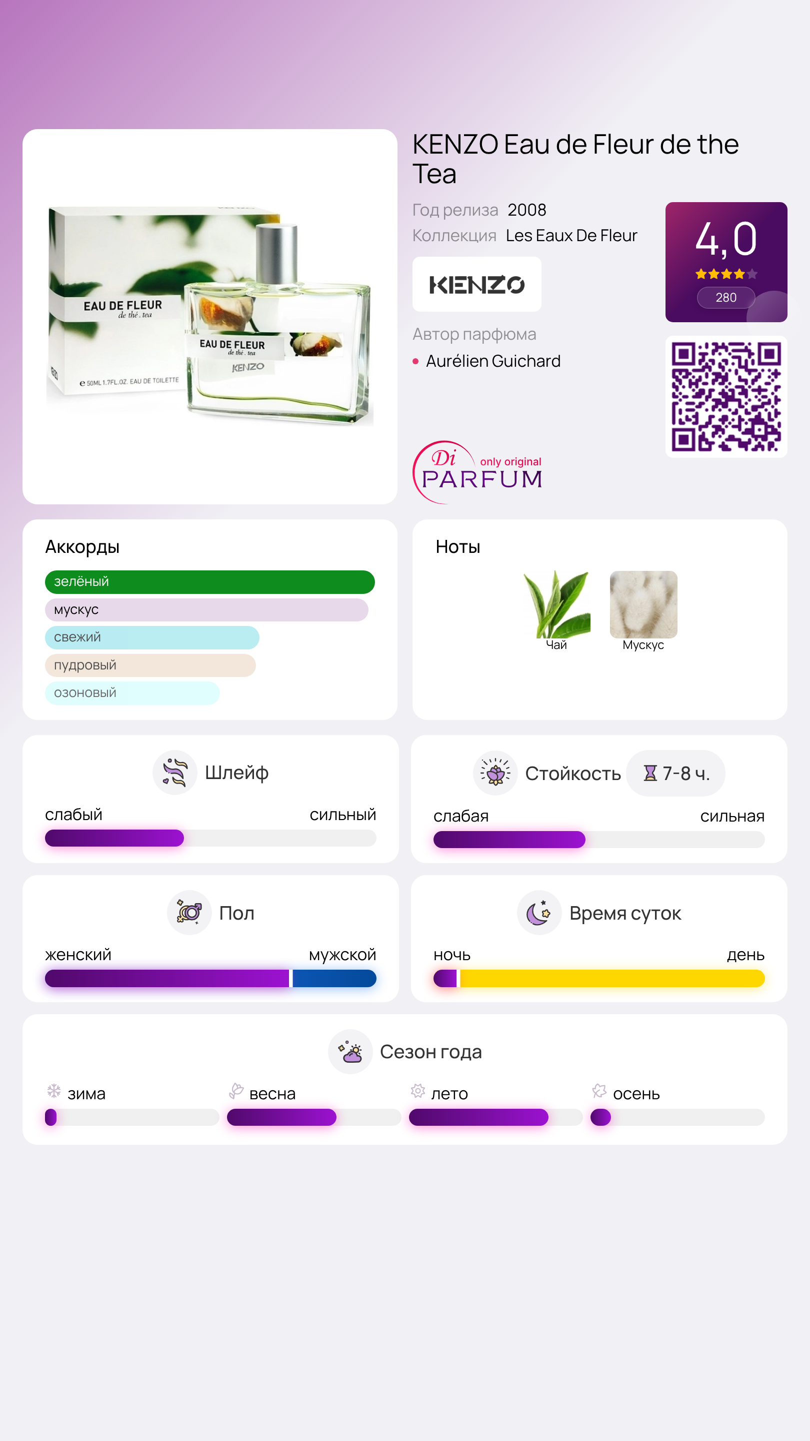 Бренд Kenzo показал свой новый благоухающий трёхкомпонентный аромат Kenzo Les Eaux De Fleur. Он создаёт неповторимое настроение, меняет восприятие, заряжает энергией и освежает. Этот парфюм придает легкость движениям и нежность коже. Туалетная вода Eau De Fleur de The как юный мечтательный парень, испытывающий чувство, но не находящий слов. Она наполняет вас свежестью зелёного чая, бодрящего и в то же момент окутывающего. Теплый и уютный, как песок на пляже, прогретый солнечными лучами, она завораживает Вас запахом пиона и прикосновениями мимозы. В этом аромате сочетаются: пион, мускус, листья и цветы зеленого чая.