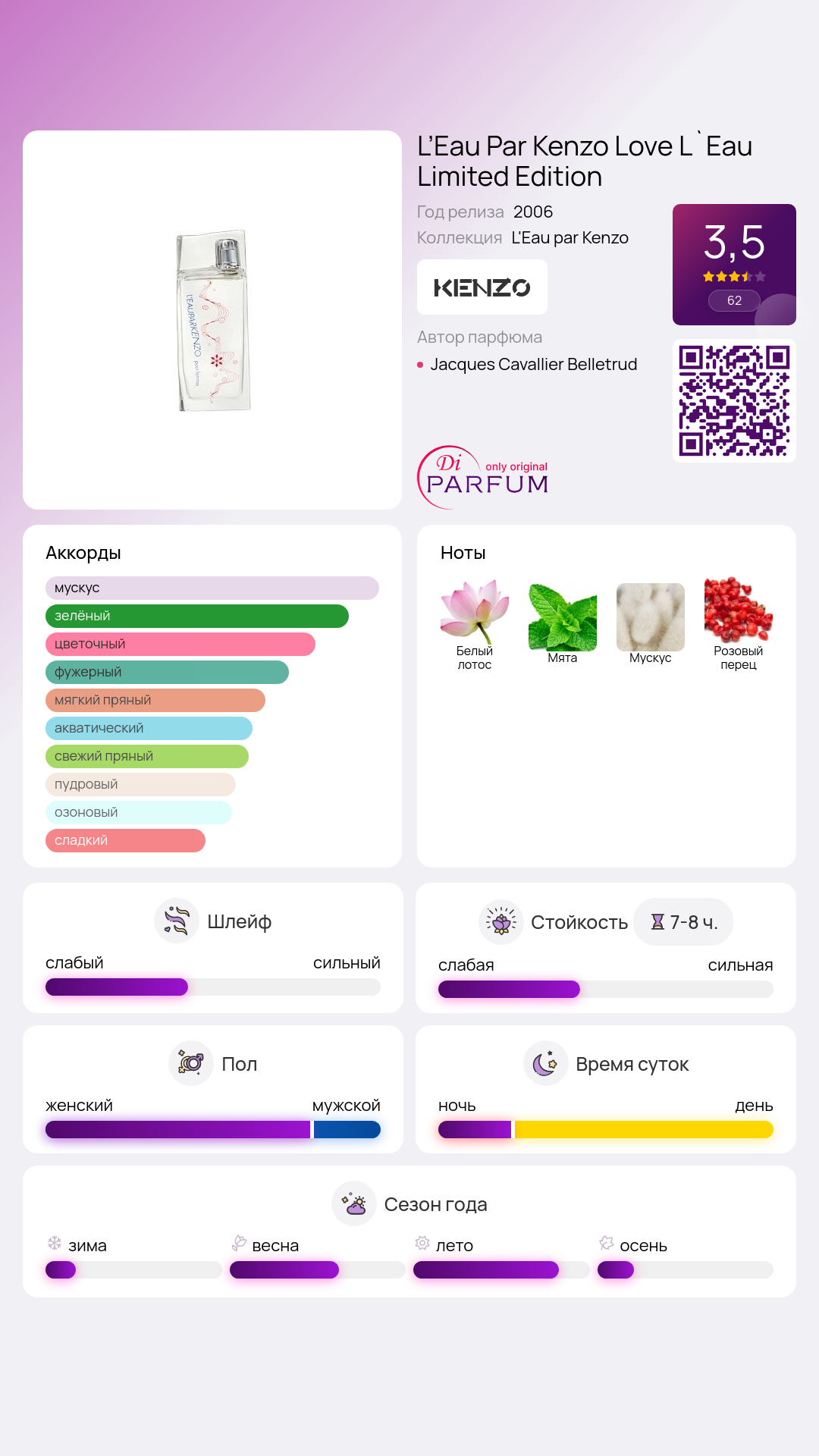 Представляем вашему вниманию новое ограниченное издание популярного аромата L’eau Par Kenzo Love L’Eau Limited Edition! Наконец-то его можно приобрести. Известный бренд Kenzo порадовал нас еще одной коллекционной новинкой. Love L’Eau Limited Edition великолепно ощущается в суете городской жизни! Аромат гальки, лотоса и ярких водных нот наполняет флакон, напоминая о свежести и жизненной силе. Тонизирующие акценты лимона «юзу», зеленого перца и листьев лотоса делают Love L’Eau Limited Edition идеальным выбором для летнего сезона и прекрасным аксессуаром для молодых женщин.