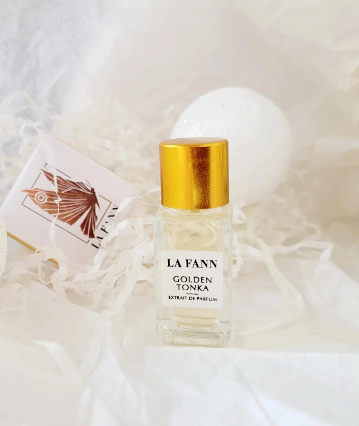Изысканный фужерный аромат La Fann Golden Tonka окутывает вас теплой объятиями Тонка-бобов. В этом сочетании переплелись ноты карамели и ванили, с добавлением чернослива и сухофруктов. Насладившись манящей сладостью меда, каждая капля подчеркивает вашу уверенность. Многослойный эликсир станет вашим ориентиром на пути к наслаждению. Остроту имбиря дополнили ароматы цветов и дурманящего табака. Запах темного меда и сена сплетаются в вихре сочных соцветий. Целебная корица распространяет свое ароматное тепло, поглощая внимание.