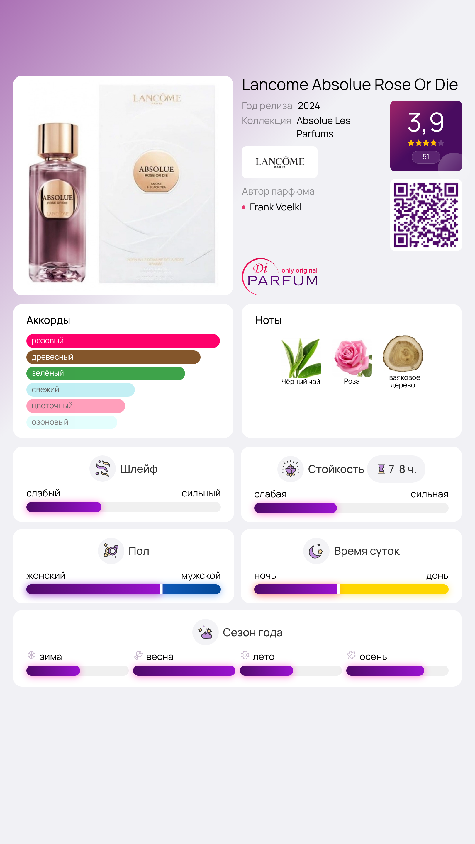 Представляем вашему вниманию уникальный аромат, который принадлежит к цветочной семье. Это парфюмерное творение поражает своей утонченностью и многогранностью, создавая незабываемый след в мире парфюмерии.