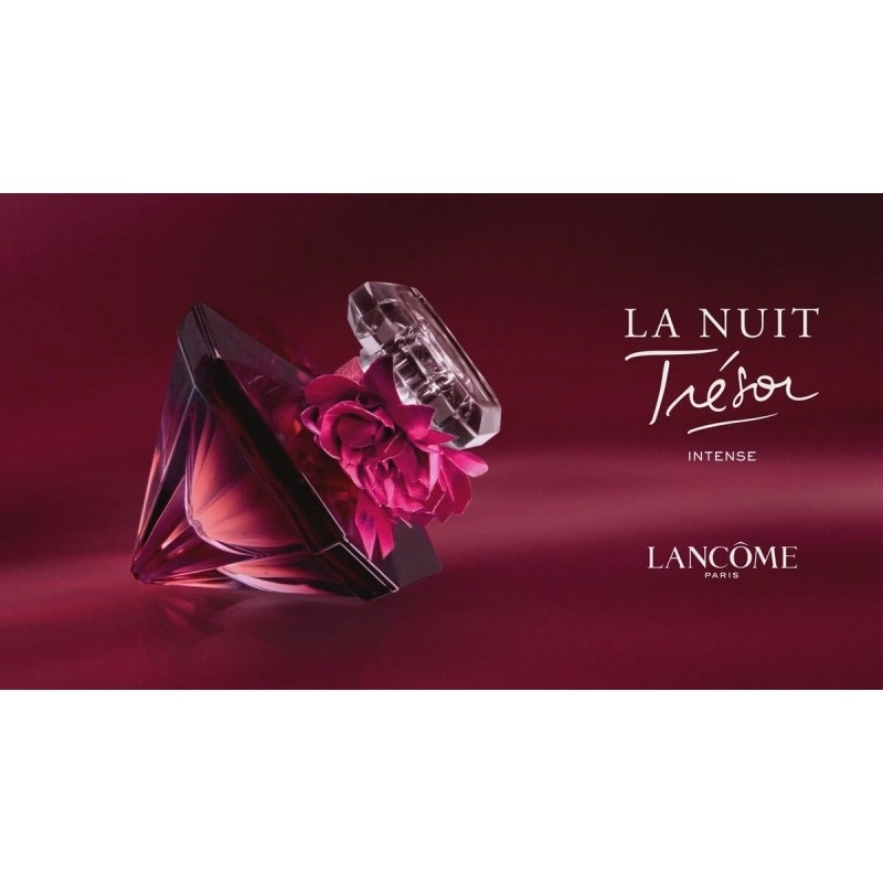 Аромат завершается чувственными теплыми древесными нотами, завершая эту романтичную историю. La Nuit Tresor Intense от Lancome — это новинка 2022 года и настоящая жемчужина коллекции, способная увлечь, словно всепоглощающая страсть. Это взрыв эмоций, способный перевернуть все внутри. Это миг, когда под воздействием ночного сокровища пробуждаются настоящие чувства. Элегантный ромбовидный флакон украшен объемным цветком из атласа, становясь настоящим шедевром парфюмерного искусства.