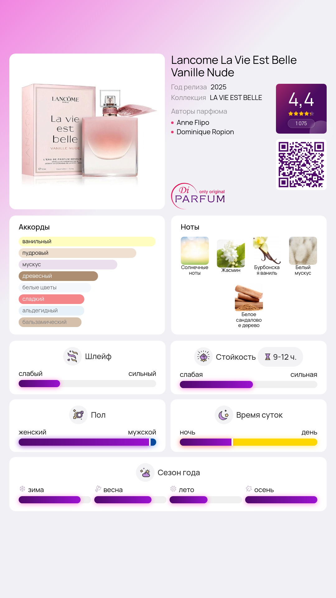 La Vie Est Belle Vanille Nude от Lancôme — это восточно-цветочный аромат для женщин, который был представлен в 2025 году. Создателями этого уникального парфюма стали известные парфюм故еры Анн Флипо и Доминик Ропьон.