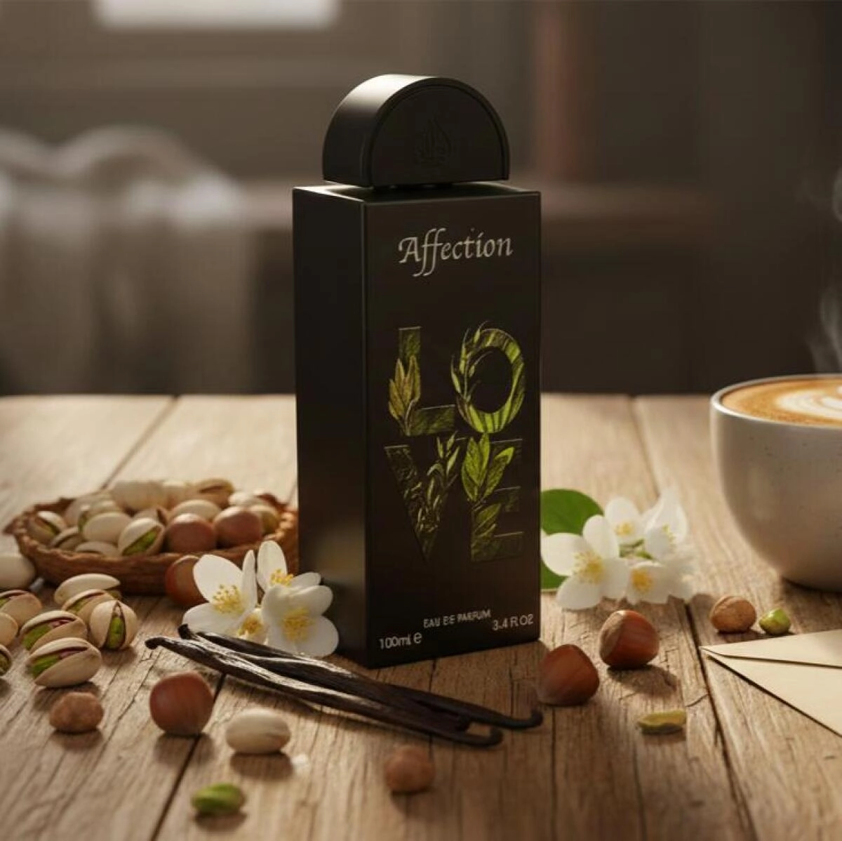 Тонкий и гурманский цветочный запах Lattafa Affection Love станет настоящим фисташковым наслаждением. Будьте осторожны: этот аромат может вызывать зависимость. Сливочная нежность, имеющая молочный оттенок, прекрасно гармонирует как с мужским, так и с женским стилем. Она окутывает вокруг себя дивным облаком. Начальные ноты раскрываются чистым, невинным ландышем, окруженным яркой зеленью.