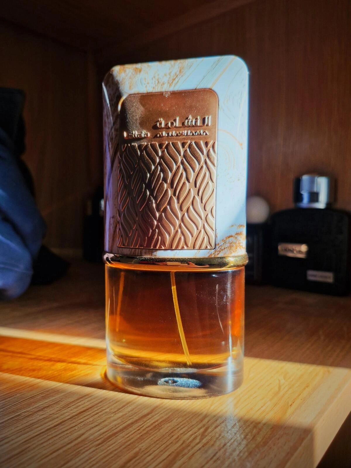 Лаконичный флакон в европейском стиле отличается колпачком, напоминающим белый мрамор, украшенным золотой табличкой с узором и золотистым ободком. Парфюмерная вода была выпущена известным арабским брендом в 2023 году.