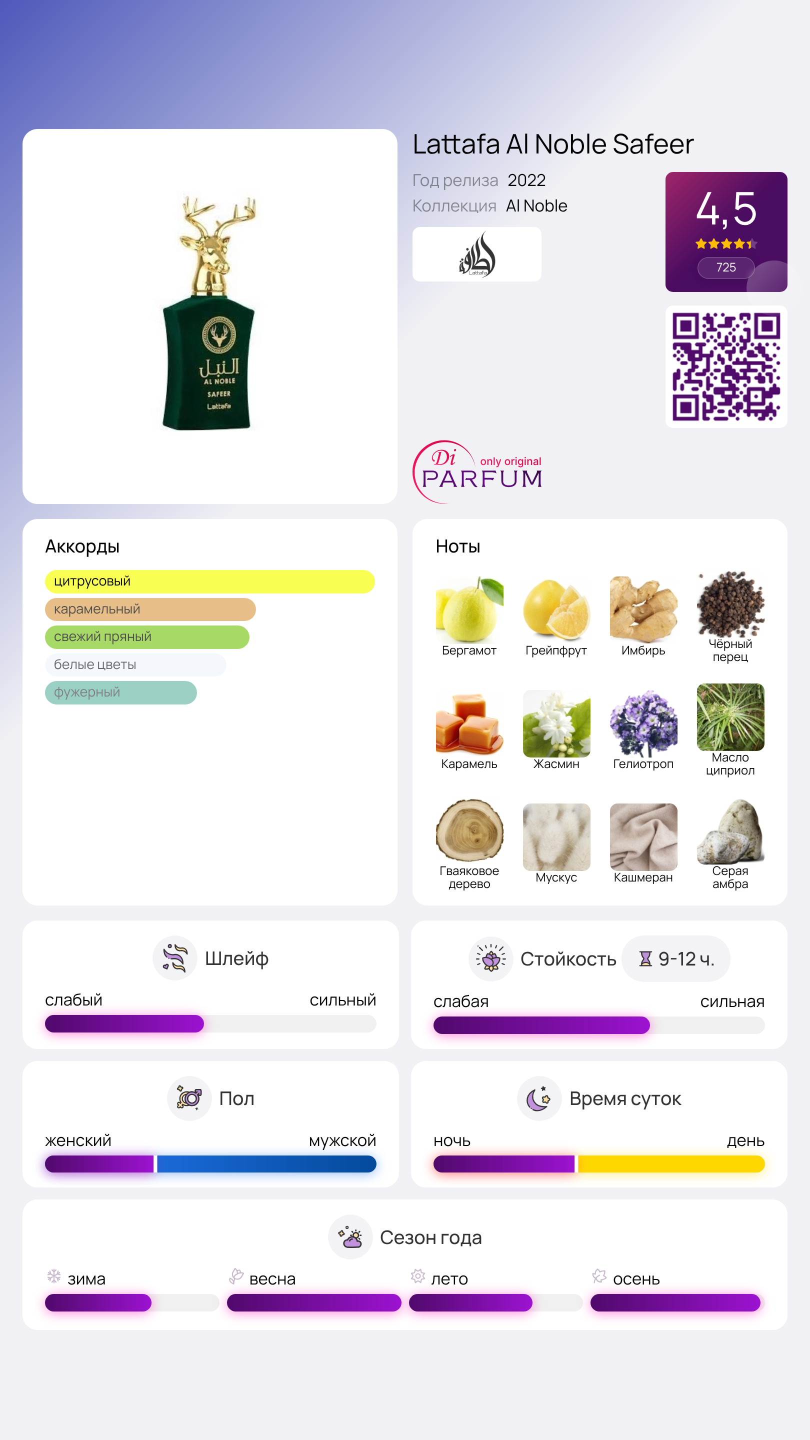 Al Noble Safeer от Lattafa – это великолепный парфюм для тех, кто ценит утонченные и интеллектуальные ароматы, способные стать универсальным акцентом как для деловых встреч, так и для вечерних мероприятий.