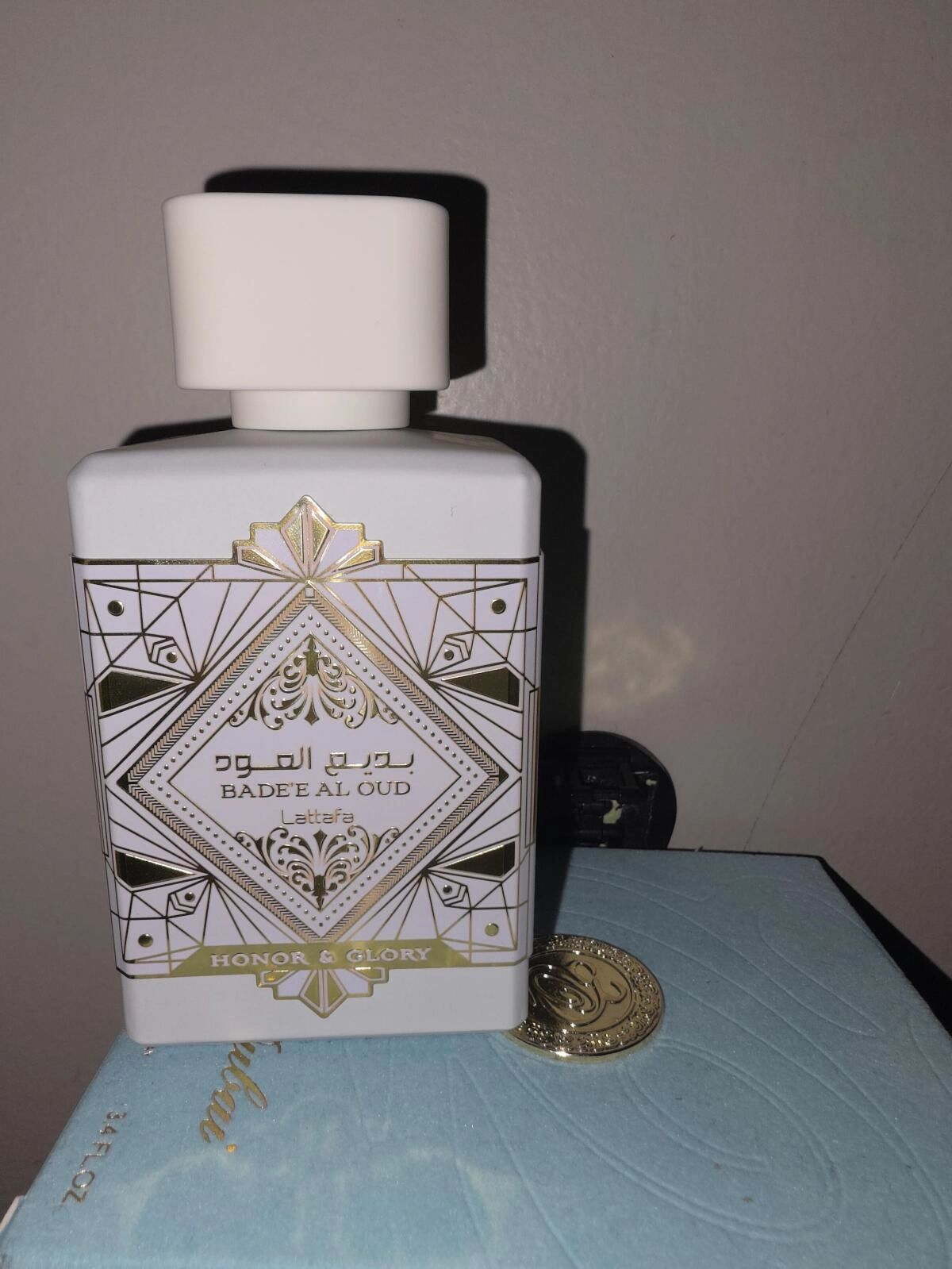 Шлейф этого аромата обволакивает мягким кашемиром, кремовым сандалом и влажно-землистым мхом. Тёплая композиция Bade'e Al Oud Honor & Glory от Lattafa несет в себе ольфакторное послание Чести и Славы. Этот аромат был представлен арабским брендом в 2023 году, а элегантный белоснежный флакон, украшенный золотыми узорами, станет превосходным подарком для мужчины или женщины.