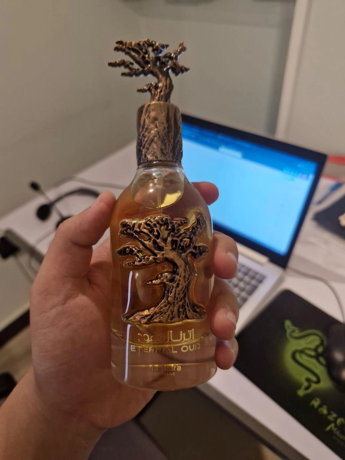 Среди ароматов, которые приобретаются не только ради их потрясающего запаха, но и для эстетического наслаждения, особое внимание привлекает новинка 2022 года — арабский парфюм Lattafa Eternal Oud. Если не знать о его назначении, флакон можно легко принять за элемент интерьёрного дизайна, ведь он выглядел бы прекрасно в любом пространстве. Декор елегантно отражает дух композиции, восхваляющей силу агарового дерева, с его изображением на стеклянном флаконе с сатиновым покрытием и мини-копией на крышке, которая, подобно корням, опирается на холодный металл.