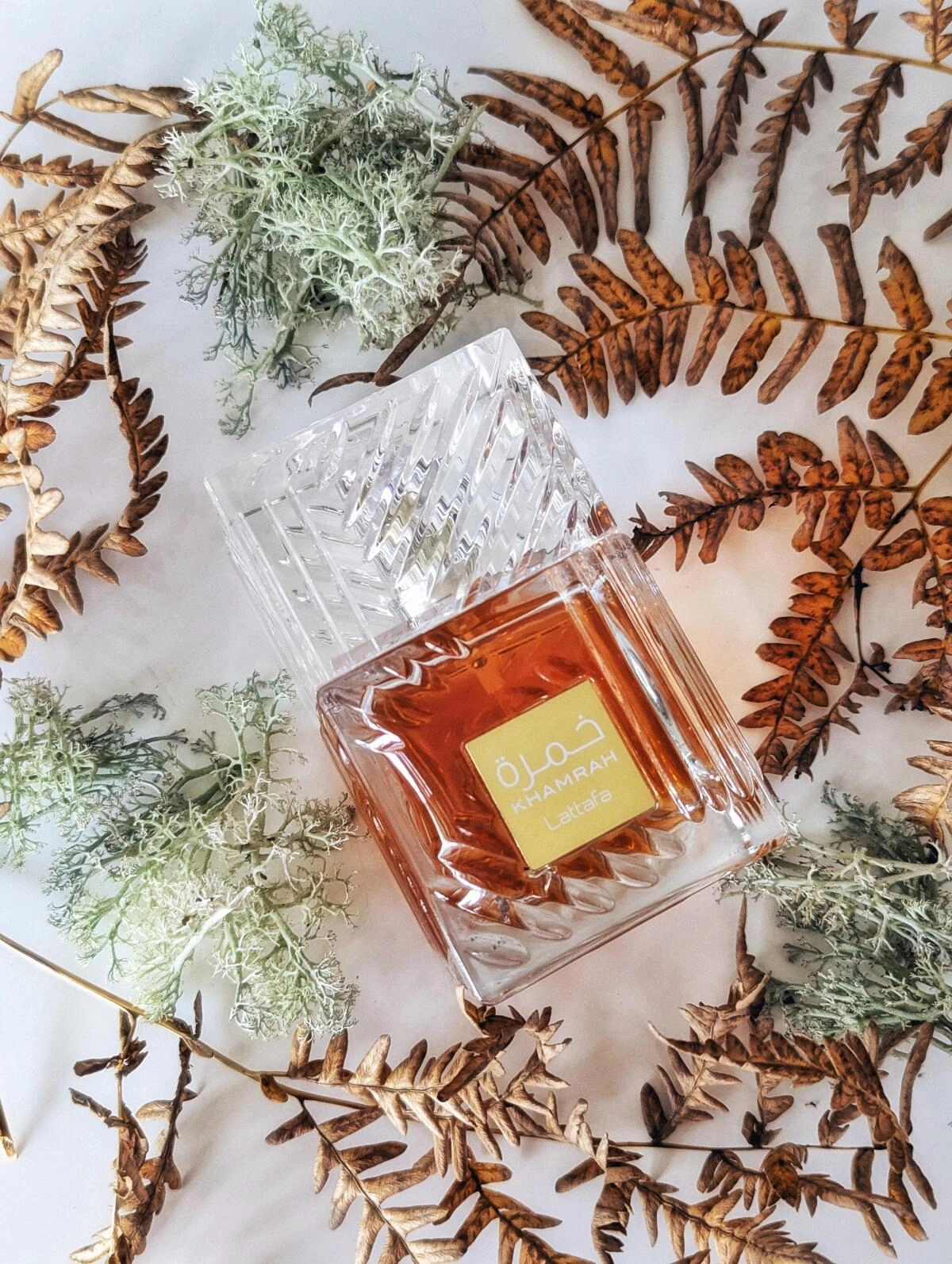 Сердце Khamrah наполнено сладкими и обворожительными нотами пралине, фиников, туберозы и магонии, которое создает атмосферу роскоши и тепла. База аромата представляет собой богатый и сложный букет, в который входят ваниль, бобы тонка, древесный янтарь, мирра, бензоин и акигалавуд, придавая композиции мягкость и притягательность.
