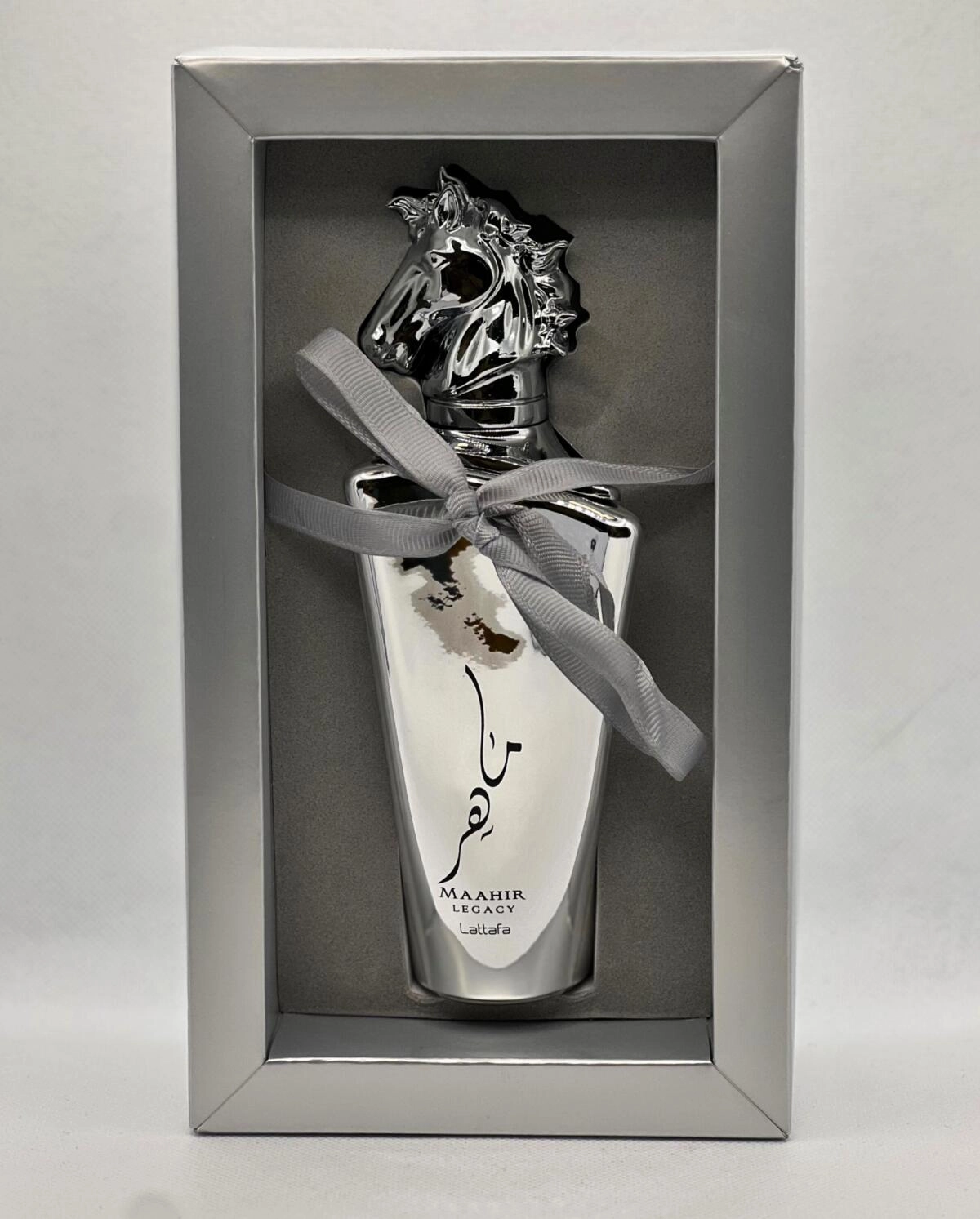 Кашмеран добавляет мягкости и облагораживания этой роскошной композиции. Maahir Legacy от Lattafa становится настоящим наследием арабской парфюмерии и представляет собой своем роде ароматическое сочетание. Сам флакон – ассиметричный и со стильным колпачком, выполненным в виде хромированной головы скакуна, станет великолепным подарком для целеустремленных мужчин и женщин. Этот нежный, но стойкий и очень приятный свежий аромат подходит для повседневного использования.