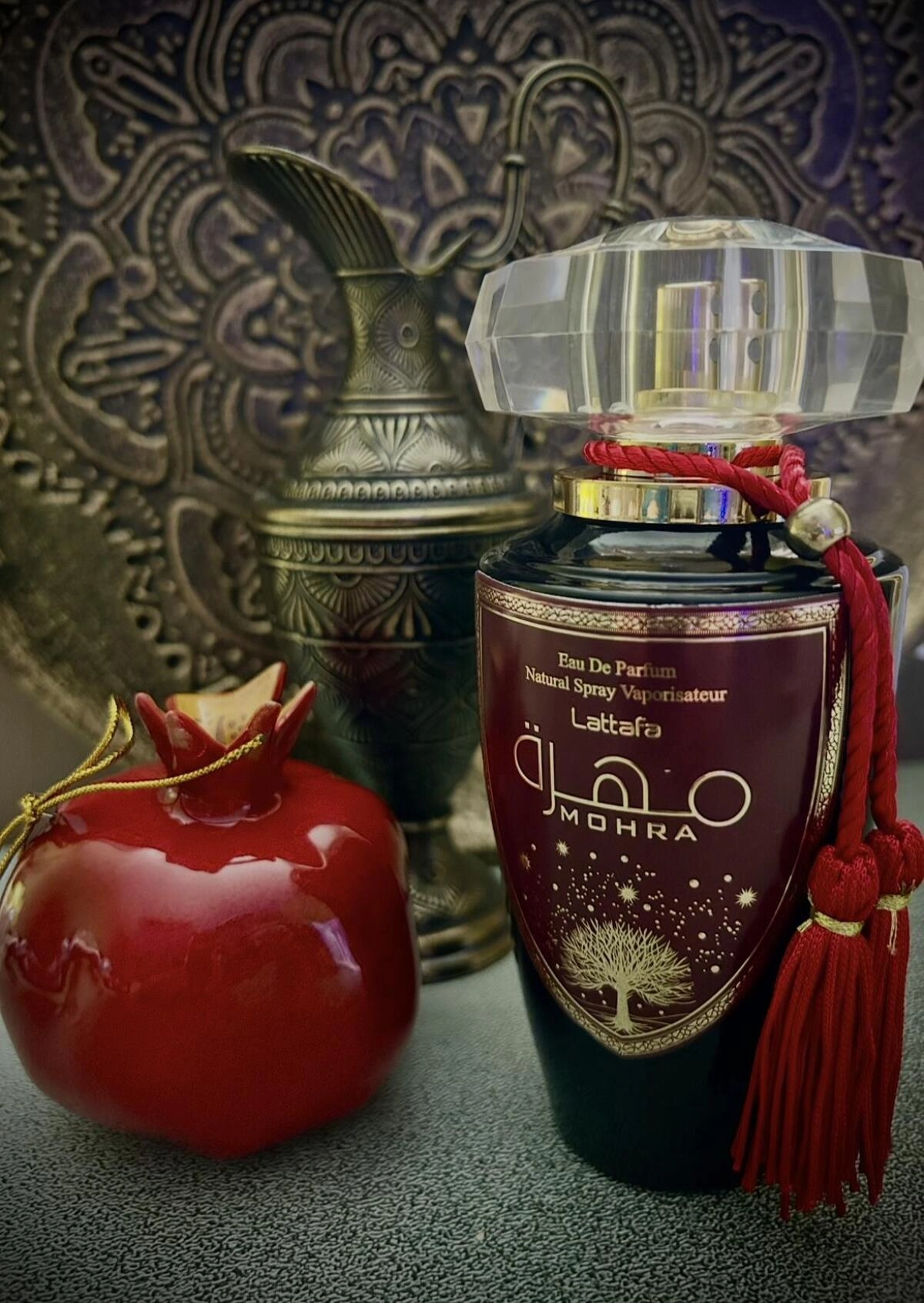 Презентованный в 2021 году, парфюм Mohra от Lattafa олицетворяет роскошь и утонченность арабской парфюмерии. Удивительным образом он демонстрирует мужественность на коже мужчин и соблазнительную женственность на женщинах. Черный флакон оформлен в восточном стиле с золотыми узорами и алой кисточкой, добавляя ему особый шарм.