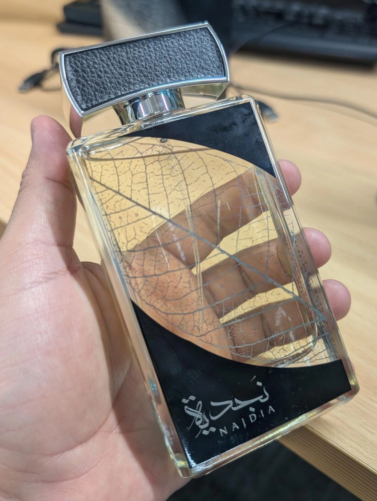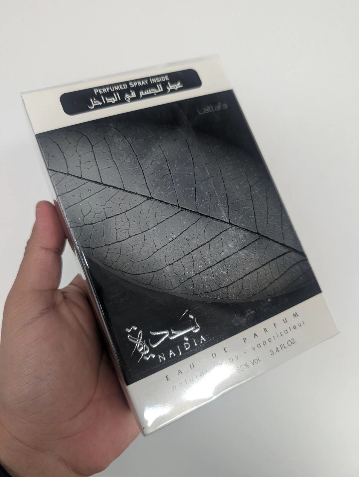 Najdia от Lattafa представляет собой изысканный флакон, содержащий первозданную энергию. Этот аромат — богатый и яркий микс из цветочной, фруктовой и мускусной групп. Его верхние ноты радуют свежестью лимонграсса, апельсина и пряностей, создавая бодрое открытие. Основная сила Najdia заключается в его сердечных нотах, где доминируют жасмин, табак и древесные аккорды, дополняемые амброксаном. В этой многоголосой симфонии звучат уд, кедр, сандал и чувственный мускус, добавляя гармонии композиции.