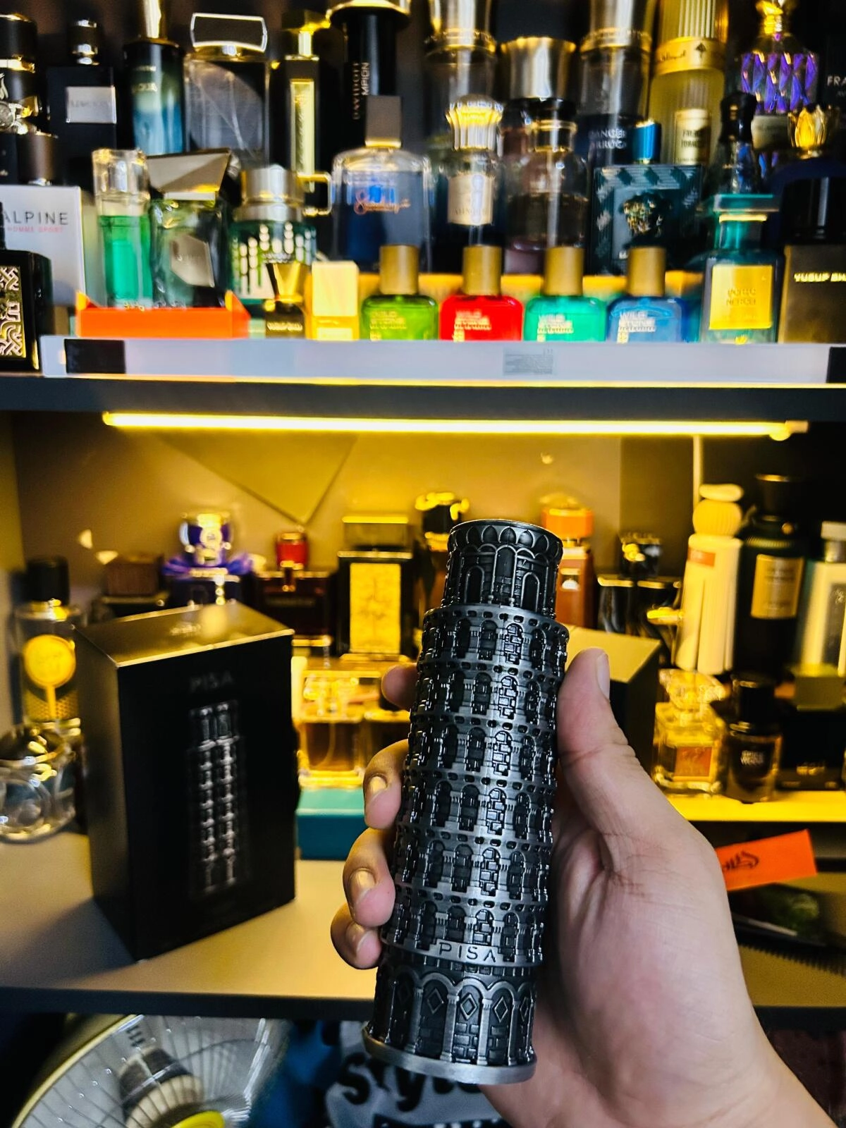 В сердце композиции скрывается благородный кедр с хвойно-смолистыми нотами. В базовых нотах чувствуются сливочный сандал и теплый амброксан. Pisa от Lattafa, современный аромат, был представлен известным арабским брендом в 2024 году, став частью их премиальной коллекции. Флакон в цвета «темное серебро» повторяет линии Пизанской башни из Италии, являясь стильным подарком в шикарной упаковке для ценителей классической восточной парфюмерии.