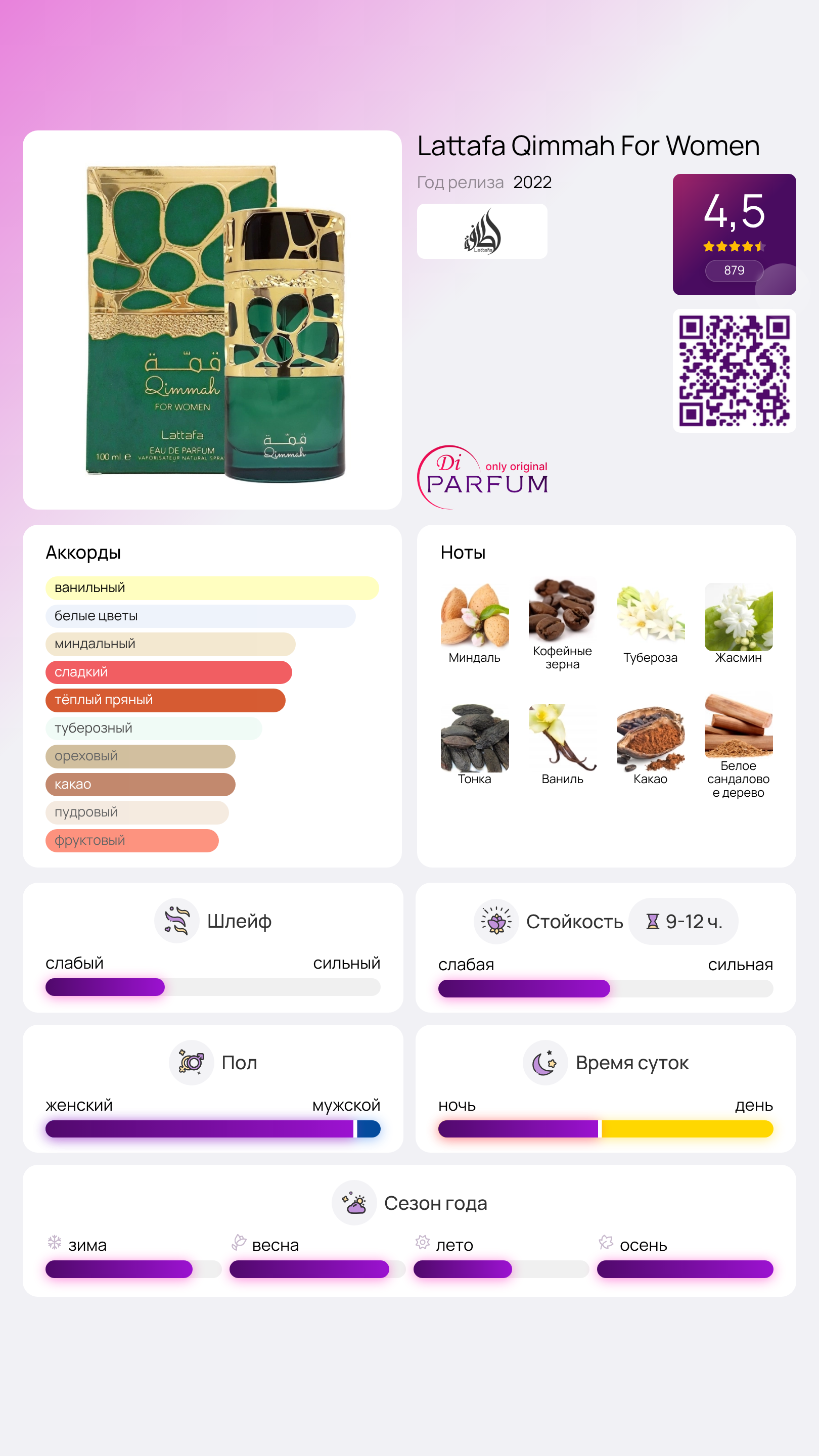 Ароматные дуэты представляют собой идеальное сочетание парфюмов для мужчин и женщин, которые друг друга дополняют так же, как двое влюбленных, стремящихся узаконивать свои чувства. Особенно бережно их воспринимают на Востоке, где семейные ценности имеют первостепенное значение, а брак считается священным. Ароматы из пары Qimmah предлагает знаменитый арабский бренд Lattafa, который начал свою историю в 1982 году.