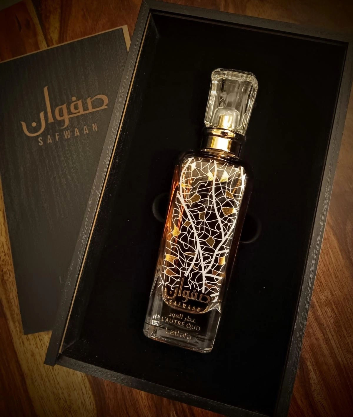 Парфюмерная композиция Safwaan L'autre Oud от Lattafa – это великолепный эликсир для мужчин и женщин с утонченным вкусом, который великолепно подчеркивает индивидуальность своего обладателя. Этот аромат был выпущен арабским брендом в 2019 году и стал частью коллекции, посвященной знаковым ингредиентам. Золотистый флакон помещен в элегантную коробочку, поверхность которой имитирует текстуру тёмного дерева.