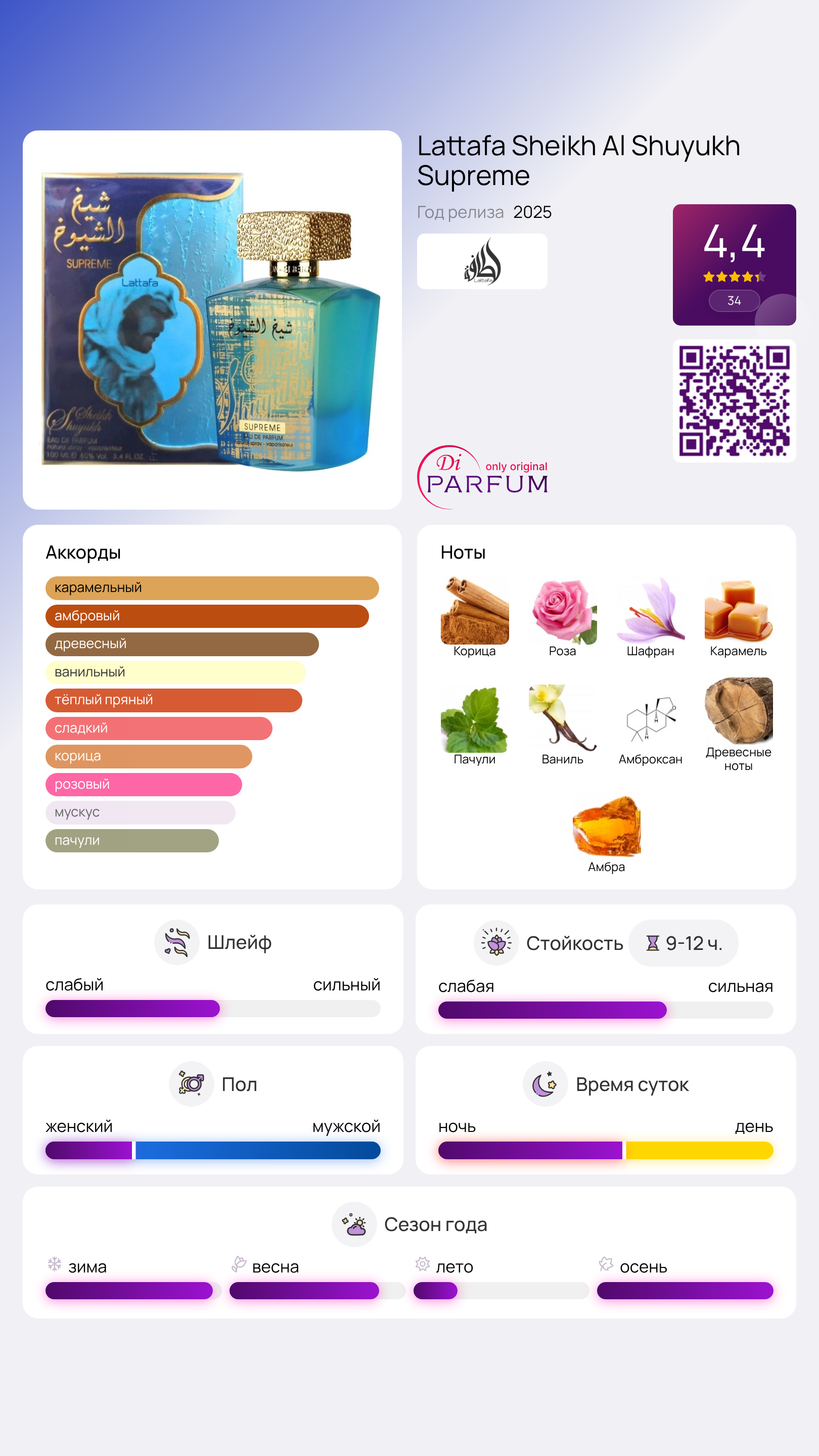 Sheikh Al Shuyukh Supreme от Lattafa Perfumes - это восточно-пряный аромат для мужчин и женщин. Данный парфюм был представлен в 2025 году и сразу же завоевал популярность благодаря своей уникальной композиции, которая сочетает в себе традиционные арабские элементы и современные западные влияния.