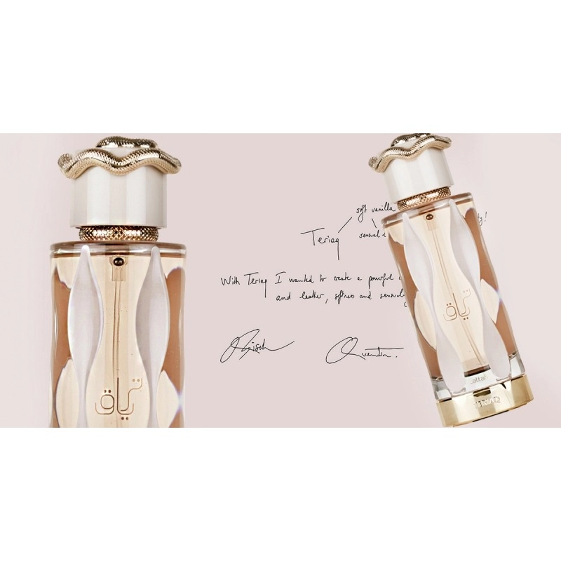 Парфюм Teriaq от Lattafa Perfumes – это универсальный аромат, созданный как для женщин, так и для мужчин. Выпущенный в 2024 году, он обещает удивить своей уникальной композицией. За создание этого аромата отвечает парфюмер Квентин Биш, который смог соединить в этом произведении искусства разнообразные ноты, создающие волшебное звучание.