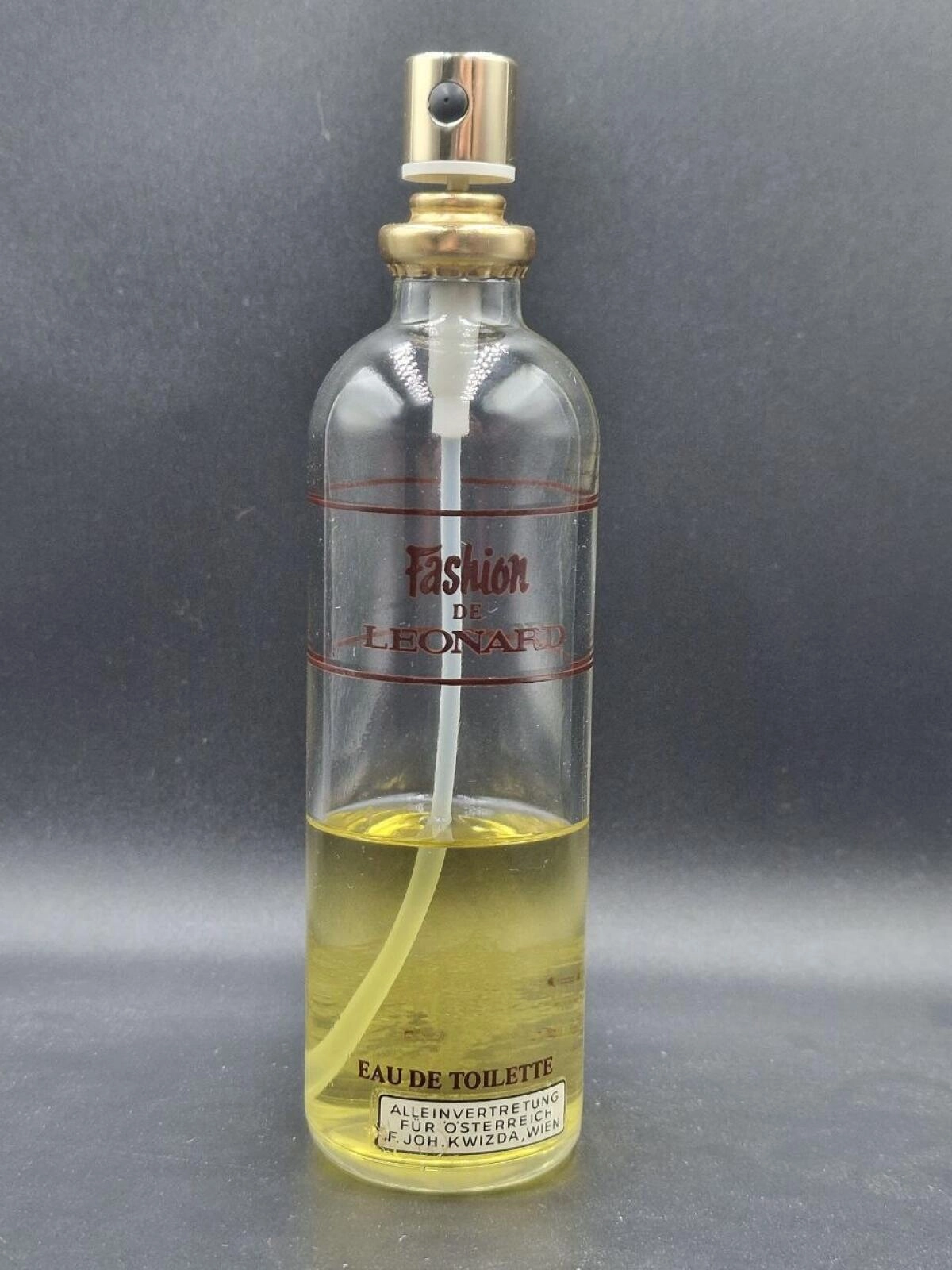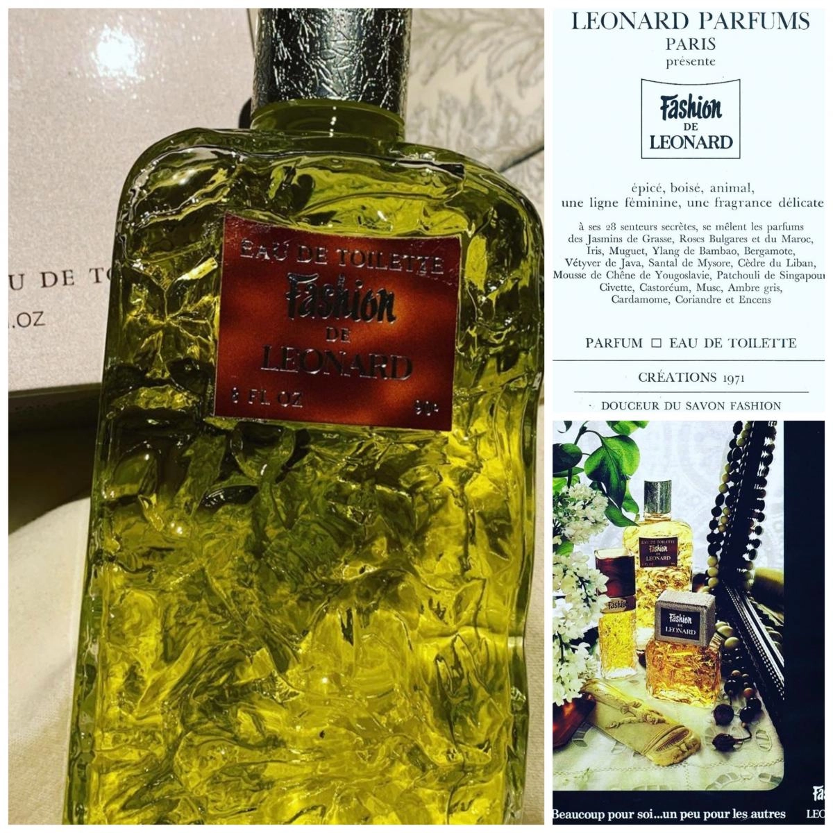Удлиненный флакон с округлыми формами декорирован элегантным золотистым колпачком. Аромат под названием Fashion был создан модным Домом Leonard в 1970 году.