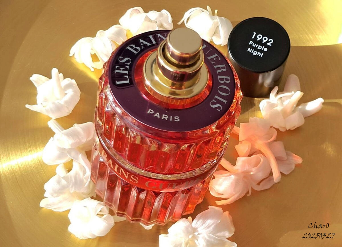 В шлейфе аромата сырые пачули придают «хрипоту» сладкоголосым цветочным нотам. Пачулевый аккорд усиливает восприятие звуков и ароматов. Выразительная композиция 1992 Purple Night от Les Bains Guerbois ассоциируется с концертом, балансирующим на грани магии. Этот парфюм был представлен в 2021 году в рамках коллекции, посвященной знаковым событиям в истории французского бренда, поэтому в названиях отражены ключевые даты.