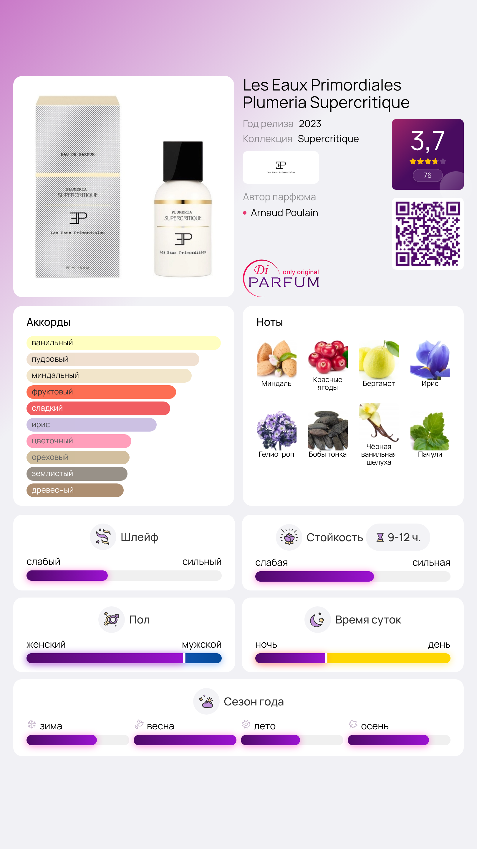 Цветы и пудровые ноты гармонируют с смолистой зеленью пачулей, создавая загадочную композицию Plumeria Supercritique от Les Eaux Primordiales. Этот аромат стал первым представителем цветочной линейки Collection Supercritique, запущенной французским брендом в 2023 году, посвященной знаковым ингредиентам.