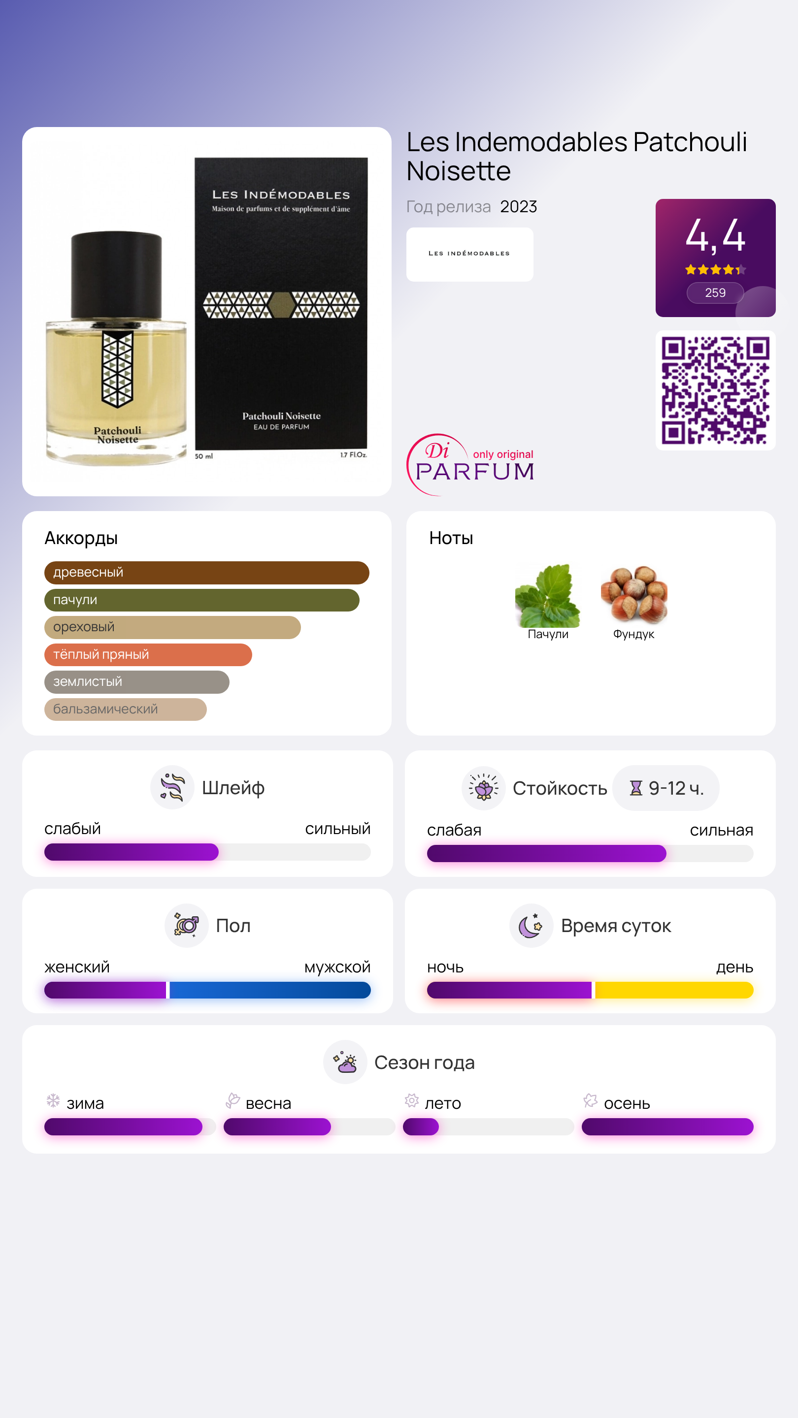 Древесные пачули с оттенками зелено-сливочного ореха раскрываются мощно и в то же время умиротворяюще. Элегантная композиция Patchouli Noisette вышла в свет в 2023 году под знаком французского бренда, в рамках коллекции Haute Parfumerie. Этот аромат выделяется своей космической стойкостью и непревзойденным звучанием, а изысканный дизайн флакона отражает атмосферу роскоши.