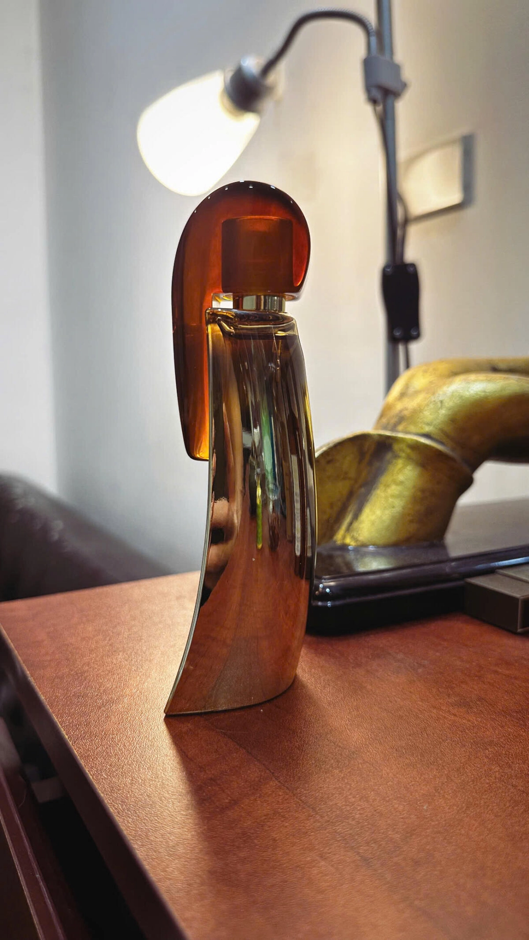 Парфюмер Delphine Thierry, обладая уникальным талантом, создала аромат, уносящий нас в мир, существовавший более двух тысяч лет назад до Рождества Христова, используя насыщенные амбровые нотки. Бронзовый флакон с янтарным колпачком имеет интересный дизайн, который не вызывает ассоциаций с привычными пирамидами.