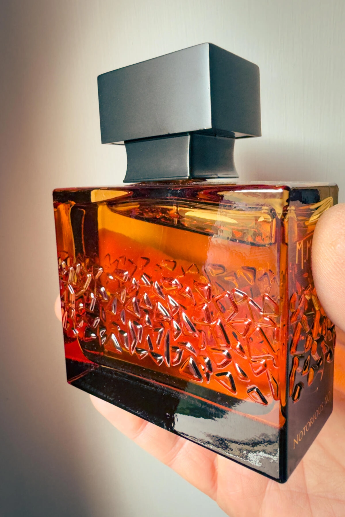 Notorious XO от M. Micallef — это древесно-пряный аромат для мужчин, который был представлен в 2025 году. За его создание отвечает парфюмер Даниэла Марти. Этот необычный аромат открывается свежими нотами коньяка, перца и морских аккордов, создавая завораживающее первое впечатление. В сердце композиции звучат пряные ноты корицы, кожаные акценты, кардамон и сладость бобов тонка, что придаёт аромату уникальное обаяние. Завершают его богатые и тёплые базовые ноты ванили, пралине, сандала, амбры и мускуса, создавая стойкий и запоминающийся шлейф.