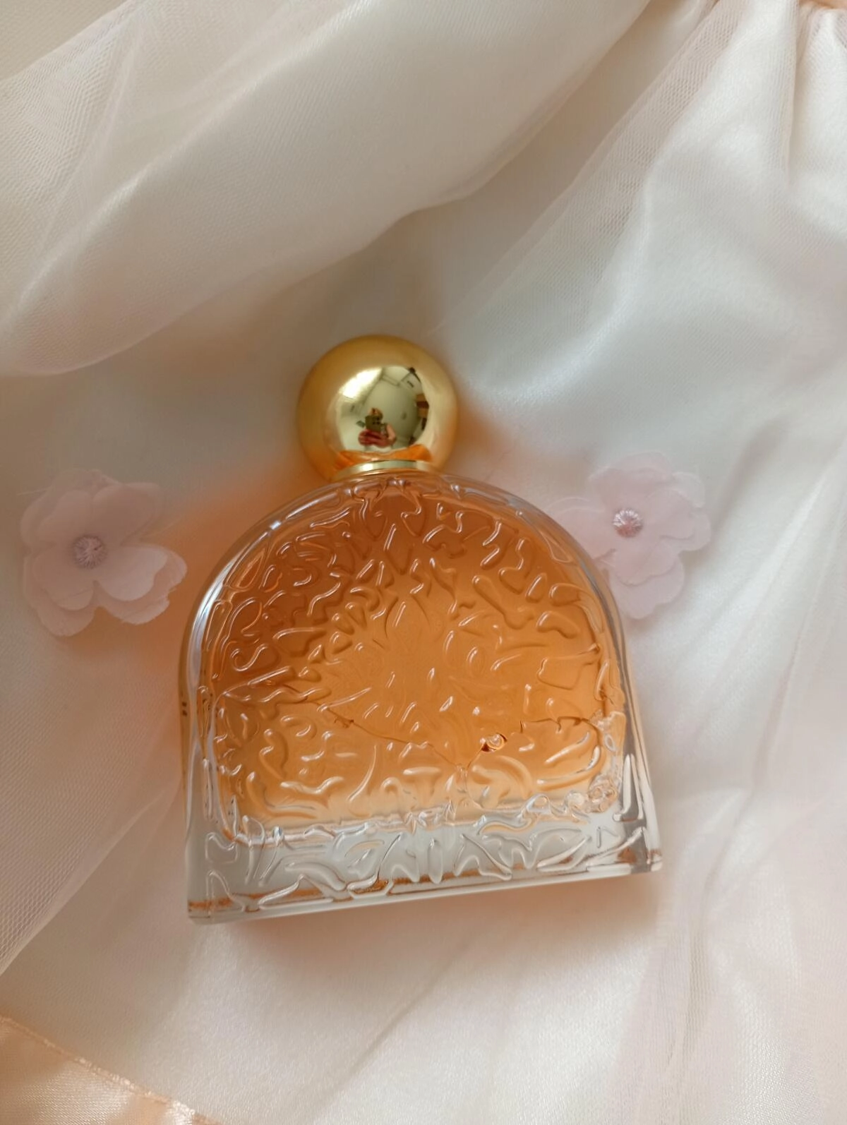 В сердце аромата расположены нежные ноты нероли, жасмина и розы, которые придают композиции утонченность и глубину. Завершает этот волшебный букет база, состоящая из абсолютного цветка апельсина, сандала, мускуса, пачули и ванили, которые делают аромат обволакивающим и сладким.