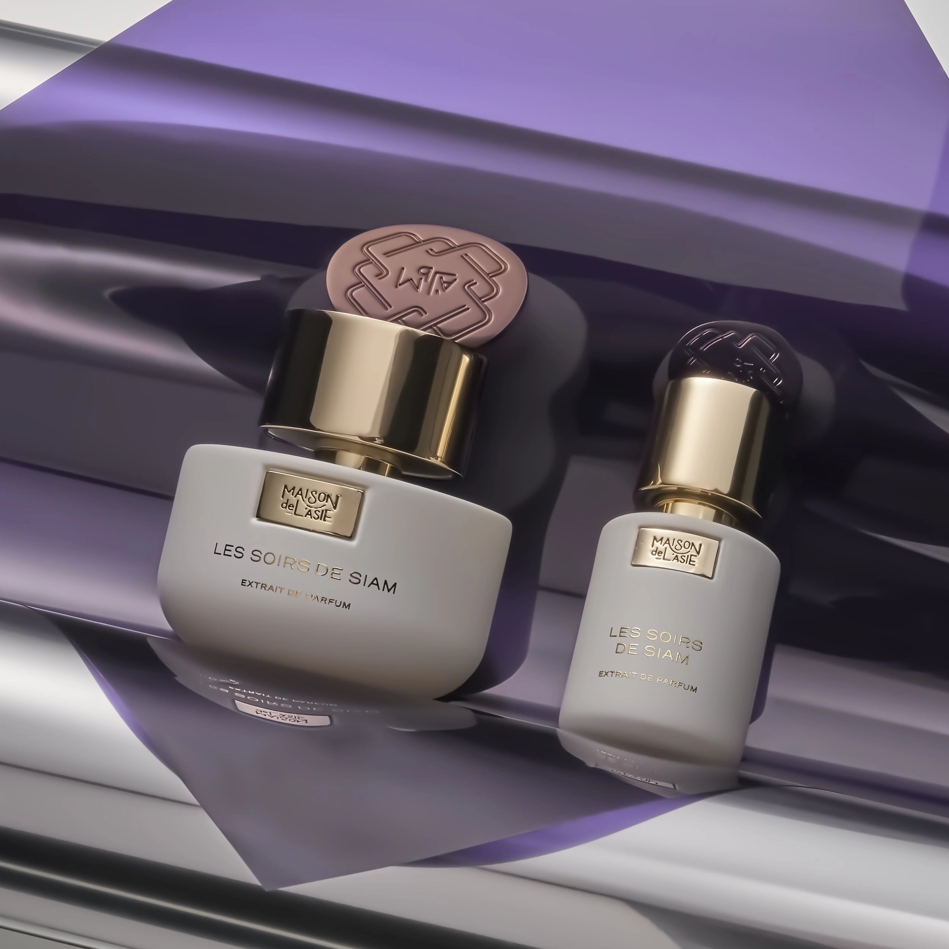 Темная небесная бездна представлена чувственной кожей и смолистым ладаном, а драгоценные древесные ноты переплетаются с мускусной амбреттой. Аромат Les Soirs De Siam от Maison de L'Asie выпущен в 2023 году известным брендом из Сингапура как часть тематической серии. Девиз этой коллекции: «Время зажигать, а не расслабляться». Окруженный золотистым декором, округлый белый флакон привлекает внимание своей изысканностью.