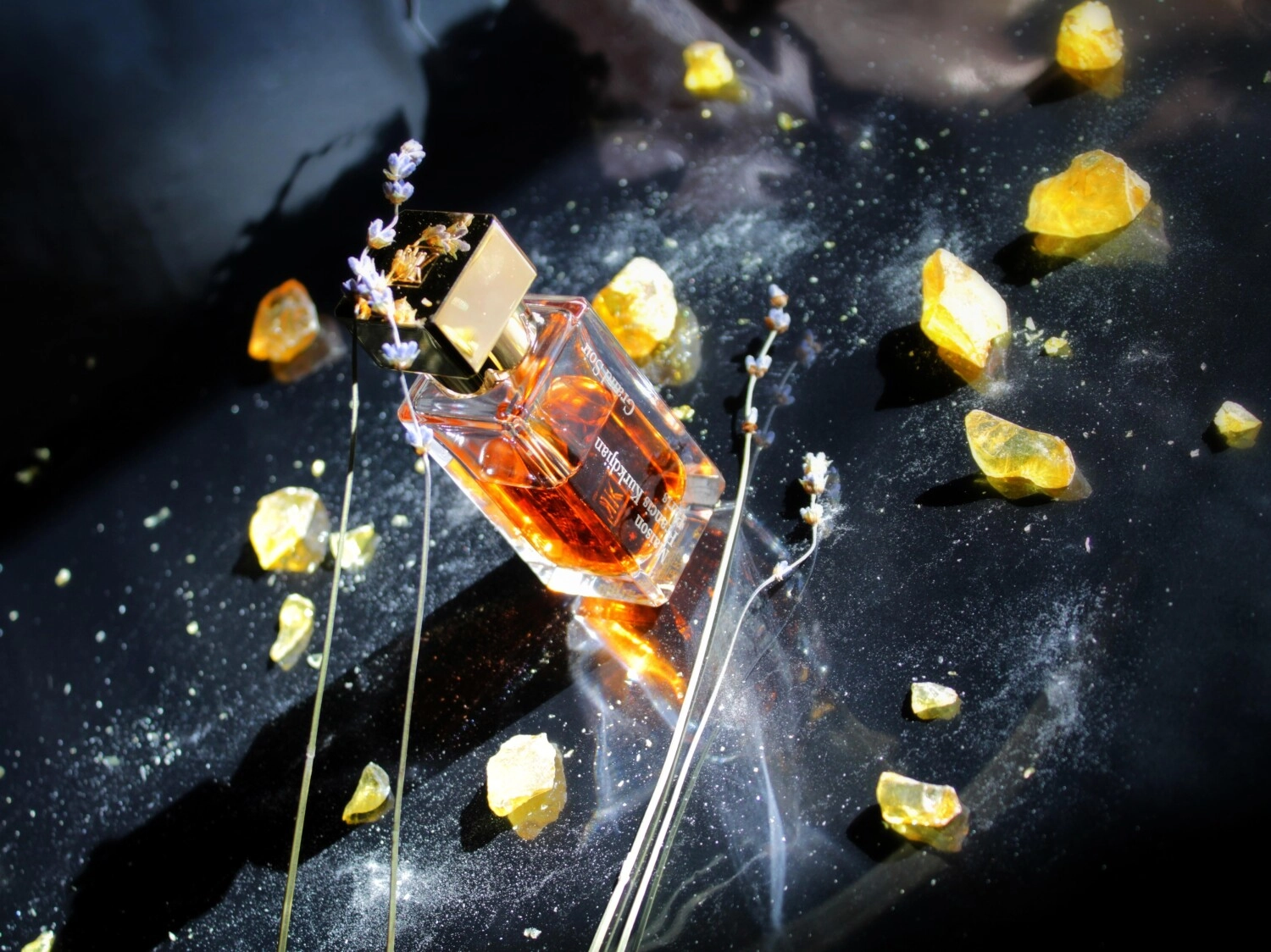 Флакон этого аромата сияет теплыми янтарными оттенками, напоминая о закате жаркого летнего дня, когда воздух переполнен сладостями, смолистыми нюансами и легкими цветочными акцентами. Всё это достигается благодаря гармоничному сочетанию амбры, бобов тонка, сиамского бензоина, ванили и испанского лабданума.