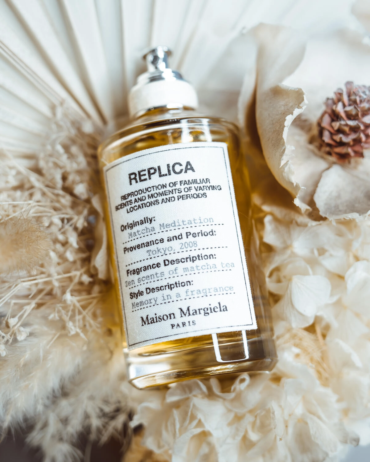 Парфюмерная композиция Matcha Meditation от бренда Maison Margiela представляет собой освежающий зеленый аромат, основанный на чайной церемонии, прошедшей в Токио в 2008 году. Создатель парфюма был впечатлён тем, как мачта обладает расслабляющим эффектом, способствующим снятию стресса и повышению концентрации. Этот аромат символизирует гармонию между телом и умом, подобную ощущениям после занятий йогой.